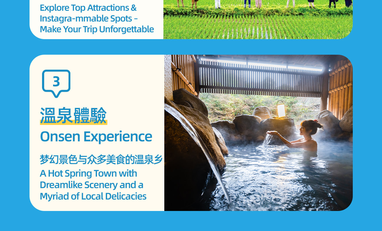 - 黑川溫泉線:1月1日至3日期間 由於當地人新年參拜沒法停車,阿蘇神社調整到大觀峰(阿蘇最好的觀景地,360度全景),其他行程不變