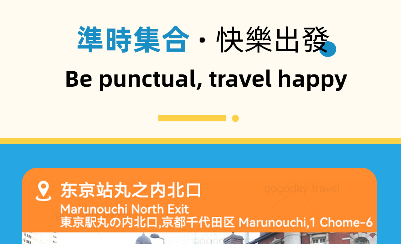 - 【關於車牌導遊資訊】我們會在出行前一天日本時間21:00之前以電郵的方式告知您第二天行程的集合地時間、導遊以及車牌資訊。如若未收到郵件,請先查看垃圾箱郵件,若無請及時聯繫我們!如遇收到多封郵件的情況下,以最新收到的郵件為準。