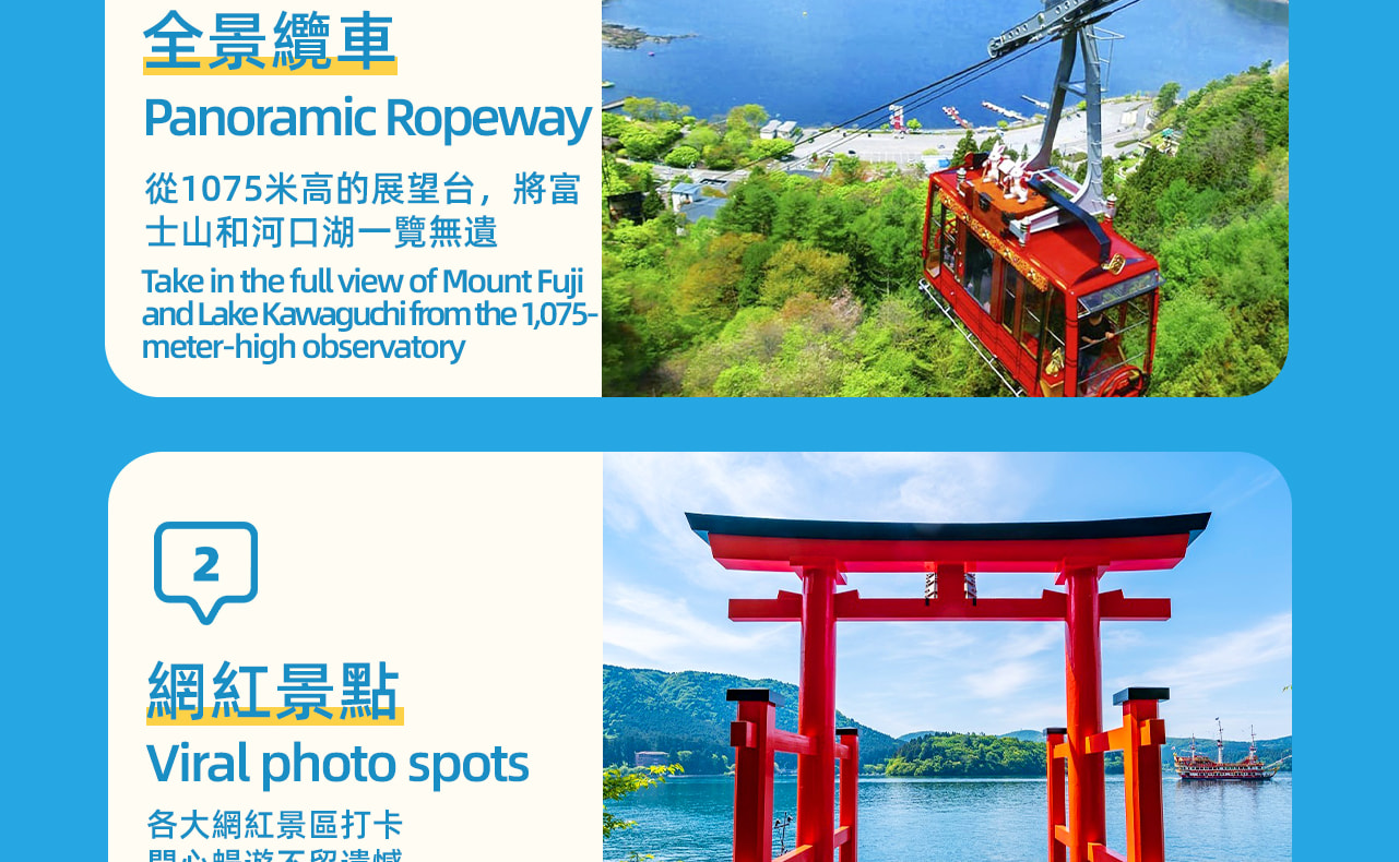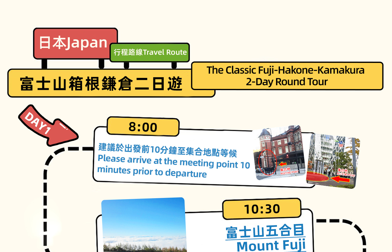 富士山&箱根&鎌倉&伊豆網紅人氣打卡&溫泉酒店二日遊|東京出發