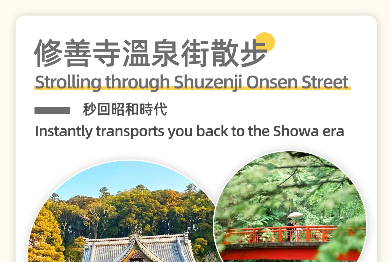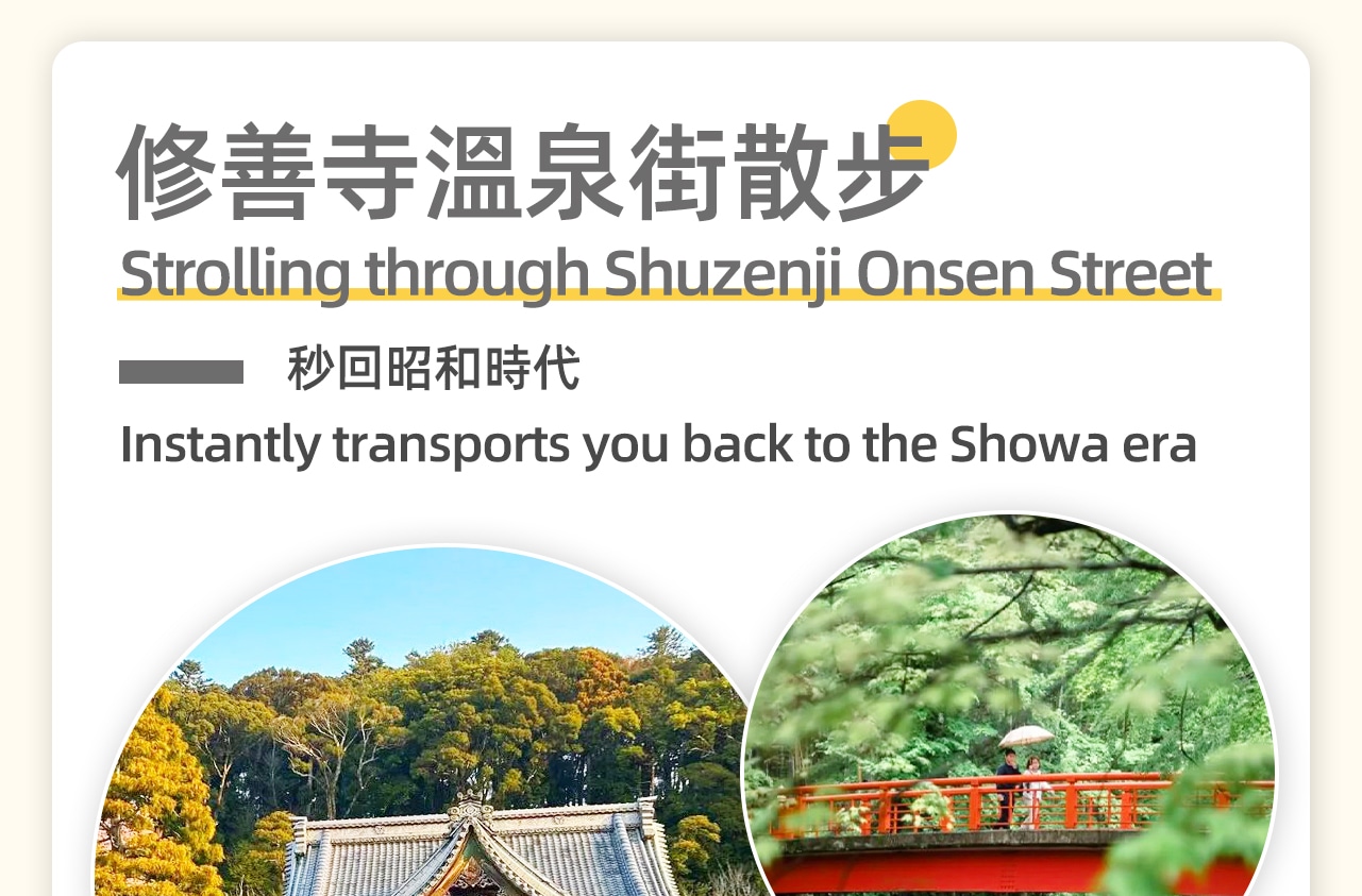 入住修善寺滝亭溫泉酒店,享受溫泉。修善寺溫泉街以其自然美景和文化背景聞名,是散步和放鬆的理想之地。