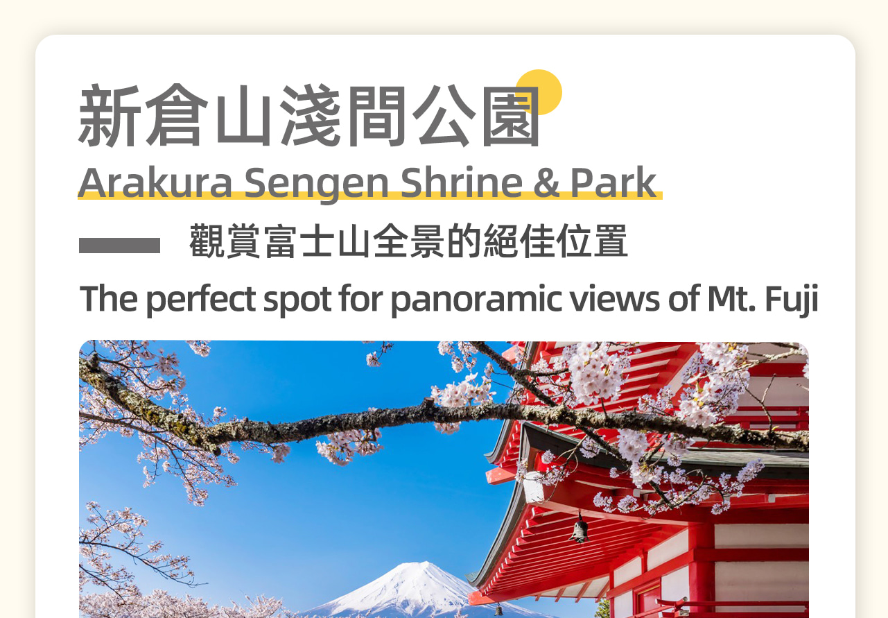 - 新倉山淺間公園適合觀賞富士山全景和四季美景。
