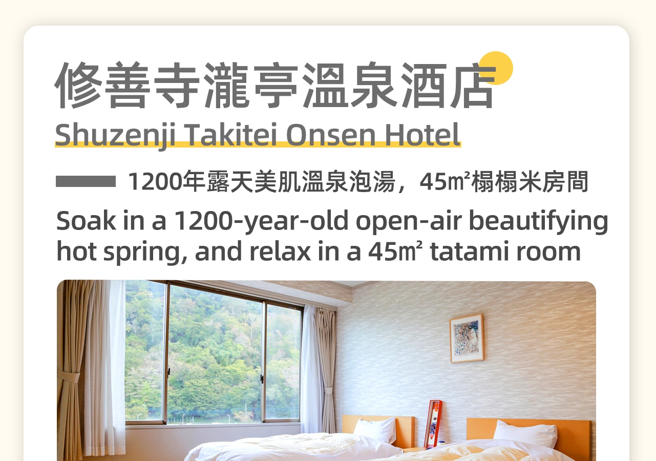 - 修善寺溫泉酒店提供寧靜的溫泉體驗和美麗景緻。