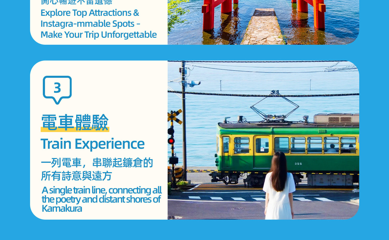 江之島有著美麗的傳說和文化遺產,是鎌倉和湘南地區的熱門景點。乘坐江之電體驗湘南海岸美景,並參觀鎌倉高校。