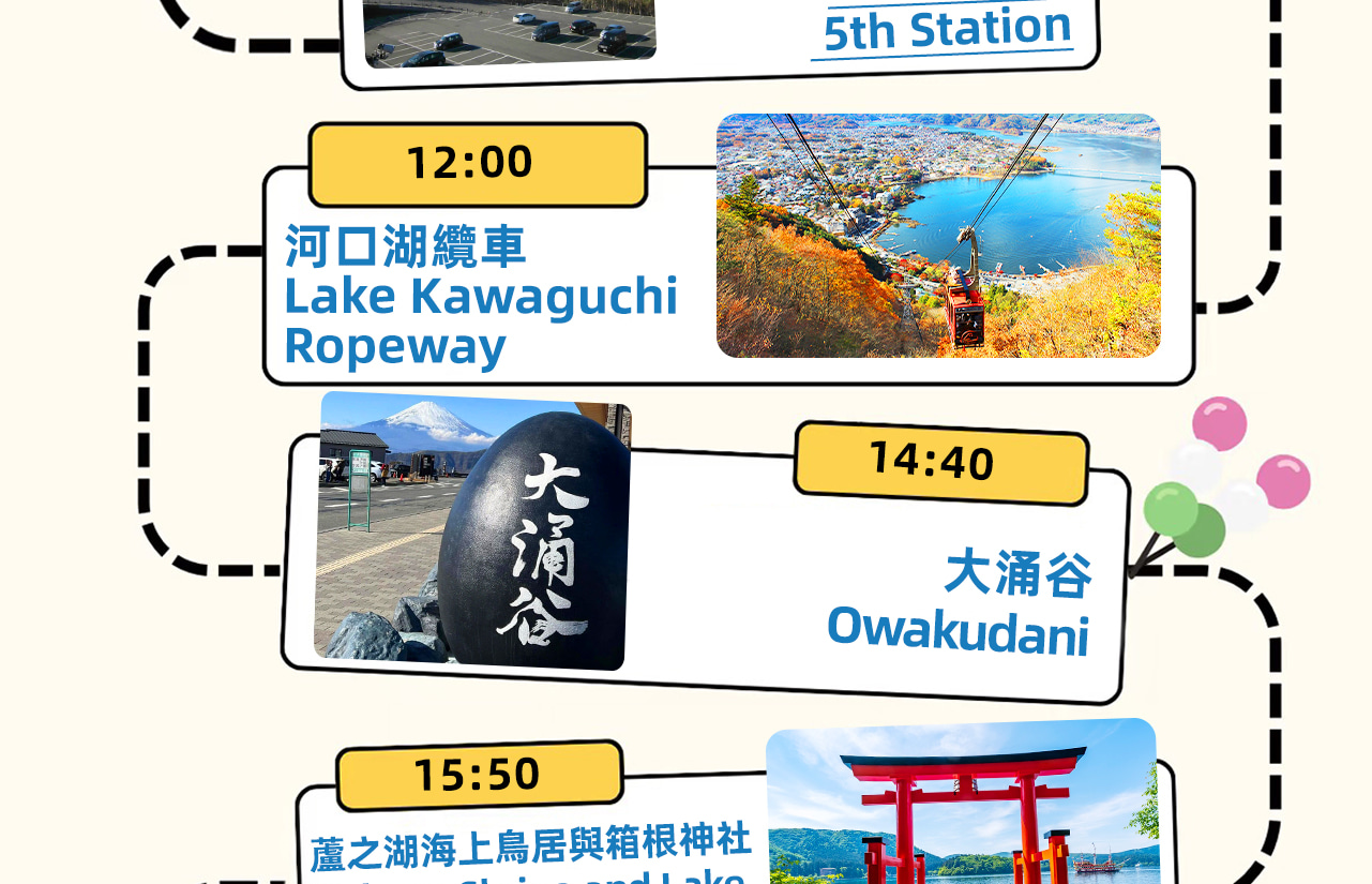 - 河口湖纜車提供絕佳的富士山和湖景觀賞點。