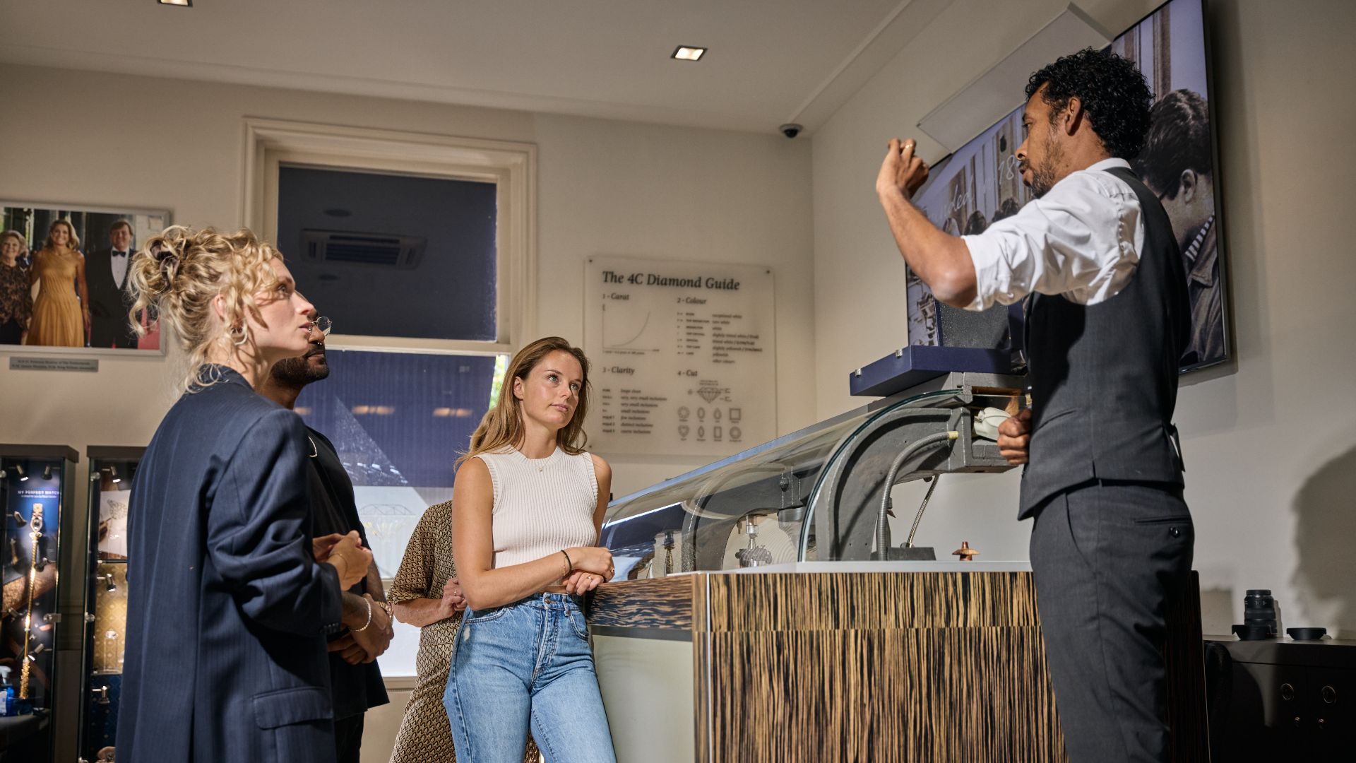 皇家訂婚體驗專為計劃訂婚或慶祝結婚紀念日的夫婦而設計,提供浪漫而內容豐富的鑽石世界之旅。試戴各種訂婚戒指,瞭解鑽石切割技術和分級,並獲得根據您的喜好量身定製的專家建議。這種難忘的體驗為您的愛情故事中的特殊時刻增添意義和光彩