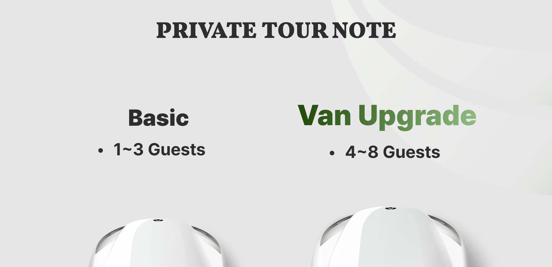 - 私人包車行程不包含門票費用。請務必攜帶現金或可使用的信用卡支付。