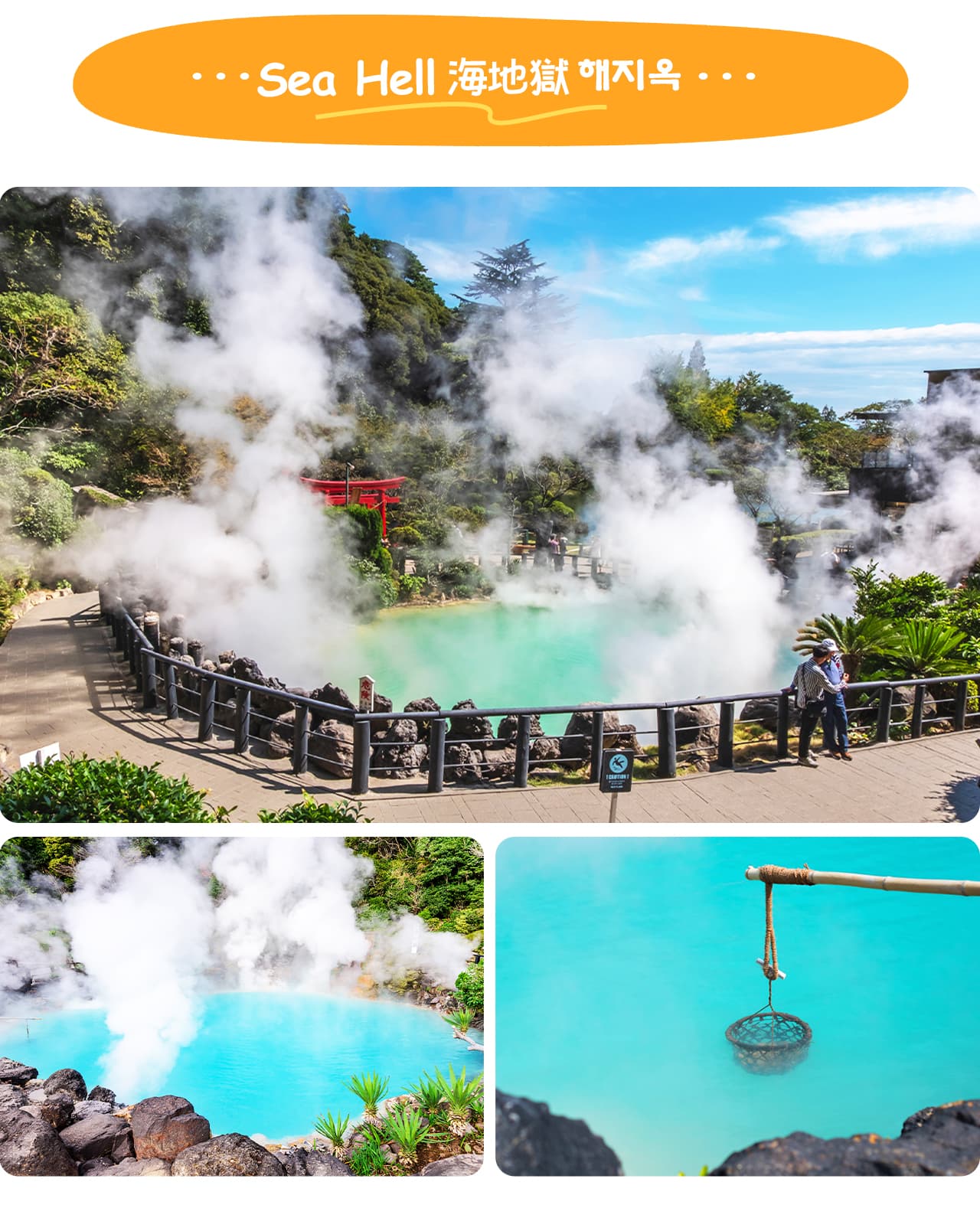 - 中午前往 別府纜車(請您知悉:1月1日~3日,如乘坐不了纜車,此景點將替換為海之卵水族館) 🚡,連接別府與鶴見嶽,乘坐纜車俯瞰別府灣和群山美景。山頂設有觀景臺與步道,可360°欣賞四季變化的自然風光,夏季涼爽避暑、秋季紅葉滿山、冬季雪景如童話。如果纜車停運,也可改遊海地獄溫泉,近距離感受冒氣翻滾的藍綠泉水,體驗別府獨特的溫泉奇觀。