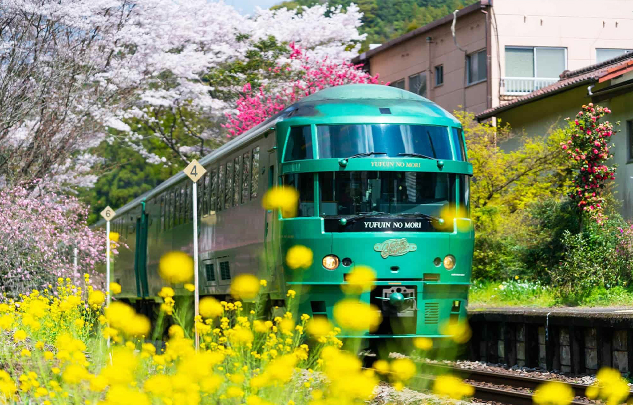 由布院之森觀光列車是JR九州最具人氣的觀光列車之一,運行於博多與由布院之間,全程約兩小時。列車採用充滿歐式復古風格的木質裝潢與綠色車身設計,營造出優雅而溫馨的氛圍。寬大的觀景窗讓乘客可以盡情欣賞沿途的秀麗風景:從福岡的城市景觀到九州腹地的青翠山谷、潺潺溪流和田園風光。車內提供專屬餐飲與紀念品售賣,乘客可邊品嚐當地特產邊觀景,旅程充滿儀式感。由布院之森不僅是通往溫泉與藝術小鎮湯布院的交通工具,更是一次獨特的觀光體驗,被譽為“行走在森林中的列車”。