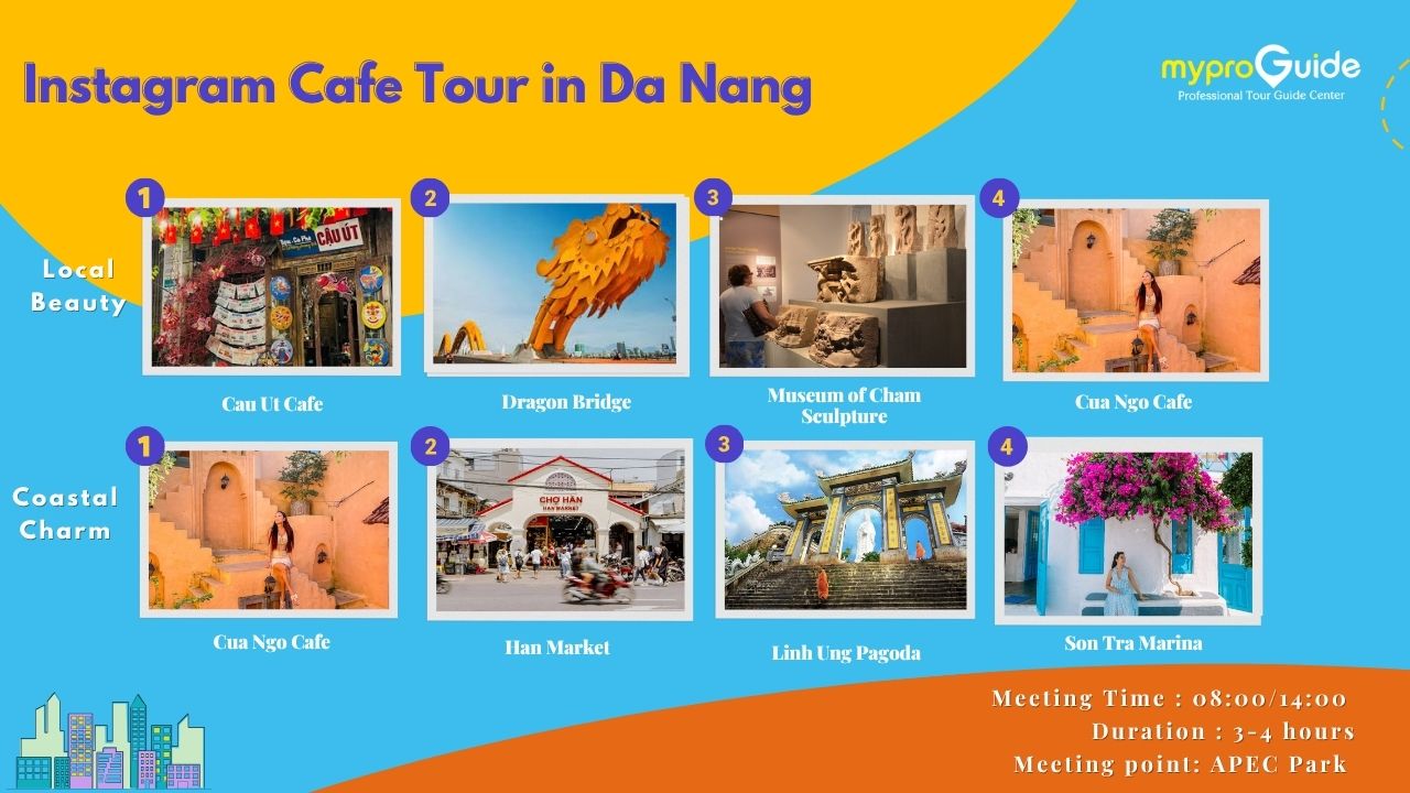 讓自己沉浸在越南在地文化與自然的和諧之中。首先,在傳統咖啡店品嚐道地的越南咖啡,並在質樸舒適的環境中捕捉難忘的照片。接著,探索峴港最具代表性的地標,深入了解當地文化中引人入勝的故事。