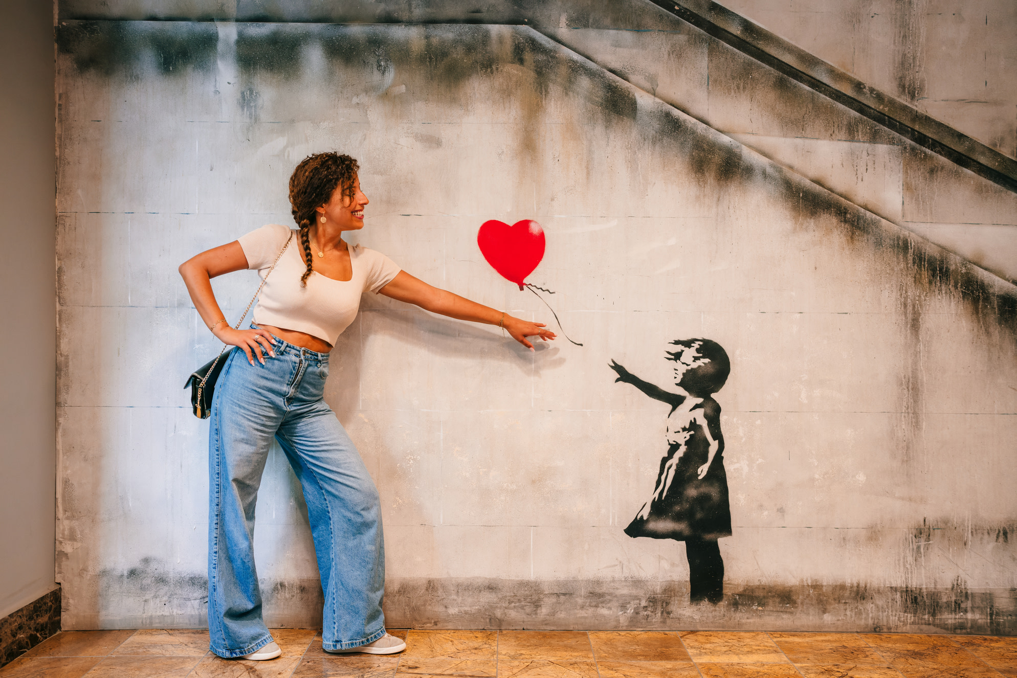 - 探索 Banksy 的 130 多件作品,包括標誌性作品和複製品,如《手持氣球的女孩》和《搜身士兵的女孩》。