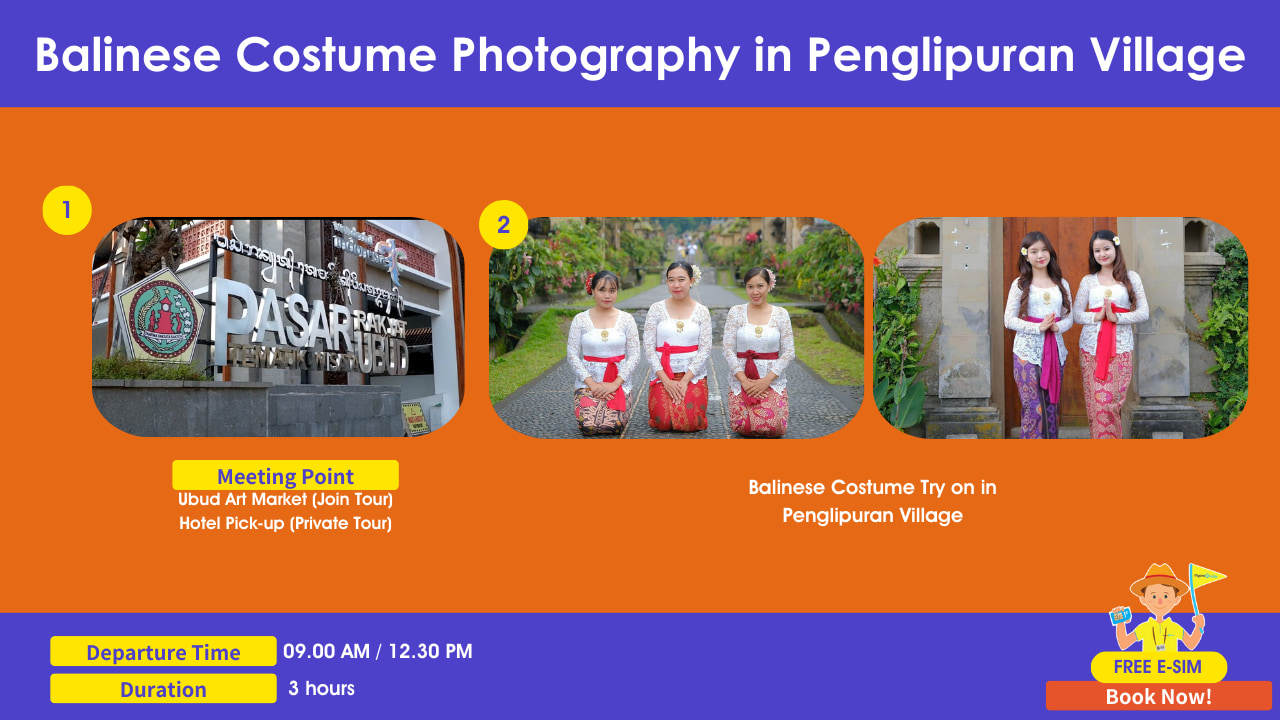 從古老的村莊傳統到寧靜的自然聖地,峇里島的故事由文化、靈性以及與大自然的和諧交織而成。在友善的當地導遊帶領下,漫步於峇里島最傳統的村莊之一「彭利普蘭村 (Penglipuran Village)」,並換上道地的峇里島服飾,享受真正沉浸式的體驗。加碼好禮:免費租借峇里島服飾為何選擇我們?✅ 獨特的文化與自然融合體驗✅ 寧靜且值得拍照留念的神聖景點✅ 多語系當地導遊提供深入淺出的故事解說✅ 適合獨行旅客、朋友與家庭