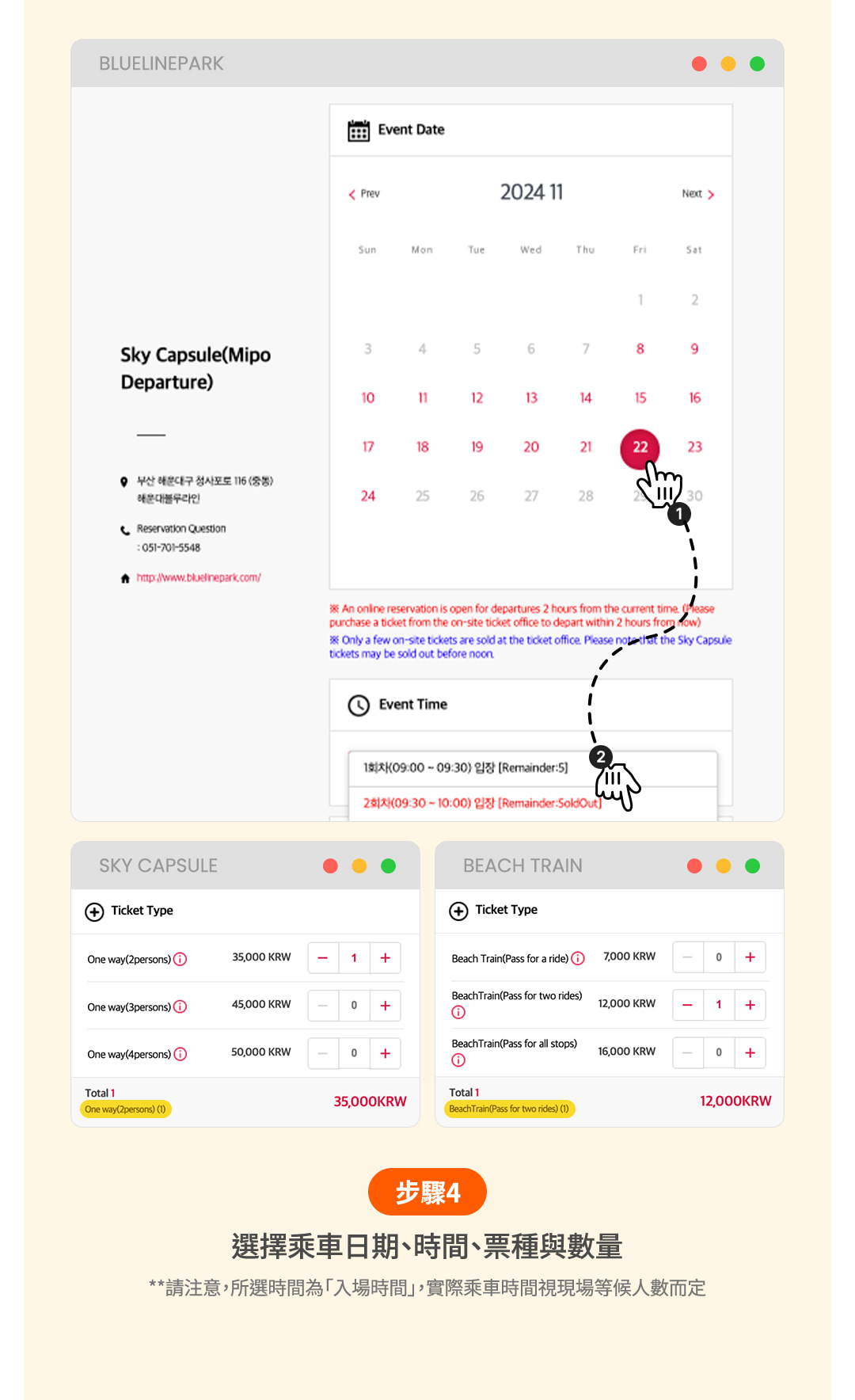 釜山海雲台藍線公園 - 膠囊列車及海岸列車車票