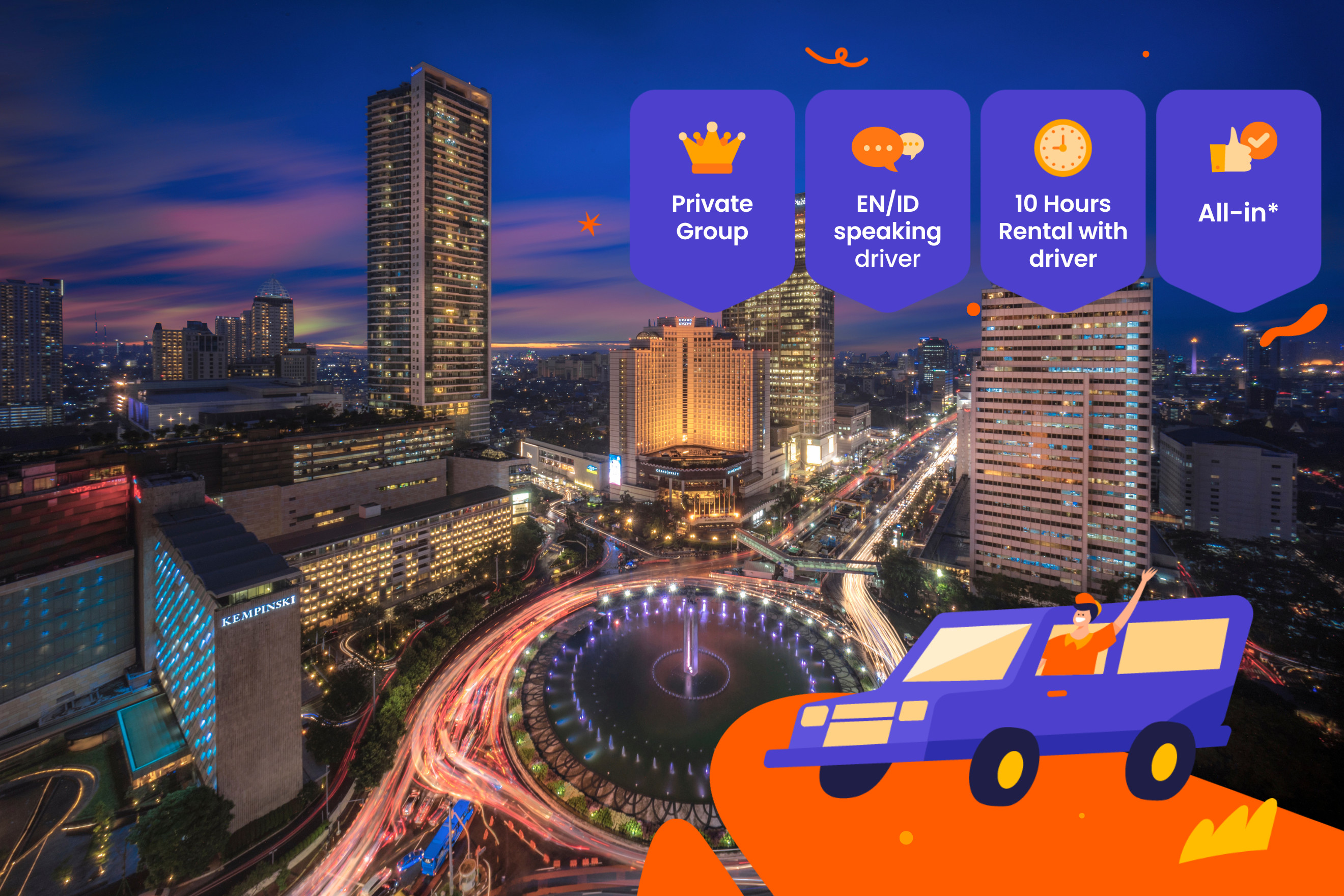- 您可隨心所欲規劃行程,或向經驗豐富的司機諮詢雅加達熱門景點建議。