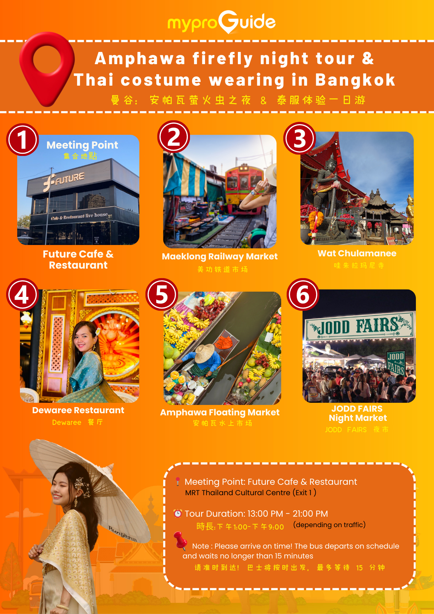 乘船夜觀螢火蟲 & 安帕瓦水上市場體驗泰服