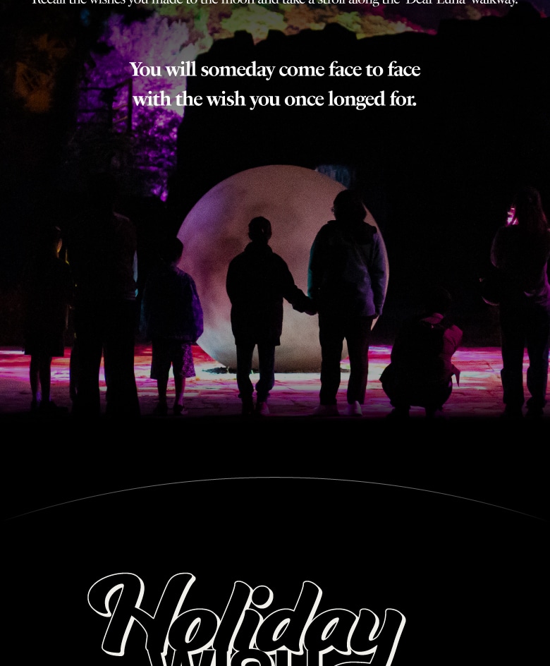 - 遊客可以在濟州 (Jeju) 原始自然的環境中,體驗如夢似幻的旅程,並藉由充滿活力的燈光和多元豐富、觸動人心的內容,喚醒被遺忘的願望,加強與同伴之間的聯繫,或是為獨自前來的遊客喚起對某位特別之人的珍貴回憶。