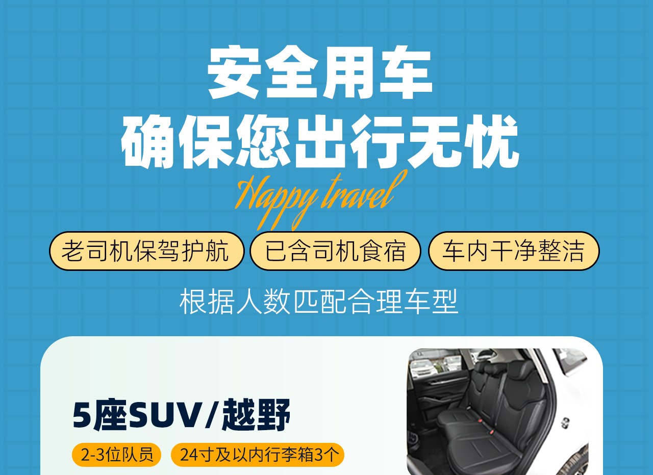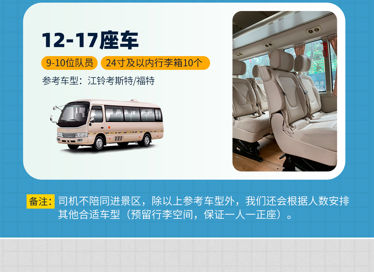 左手第一個座位為駕駛員,其他為普通座位,上車後請自行選擇座位,高原長途旅行,隊員之間請互相諒解; - 4、不可抗力: