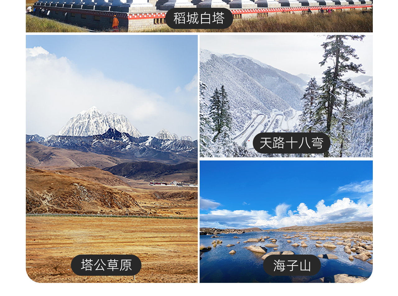 - 第4天:新都橋-天路18彎-海子山-稻城白塔-香格里拉鎮(420KM丨約8小時)