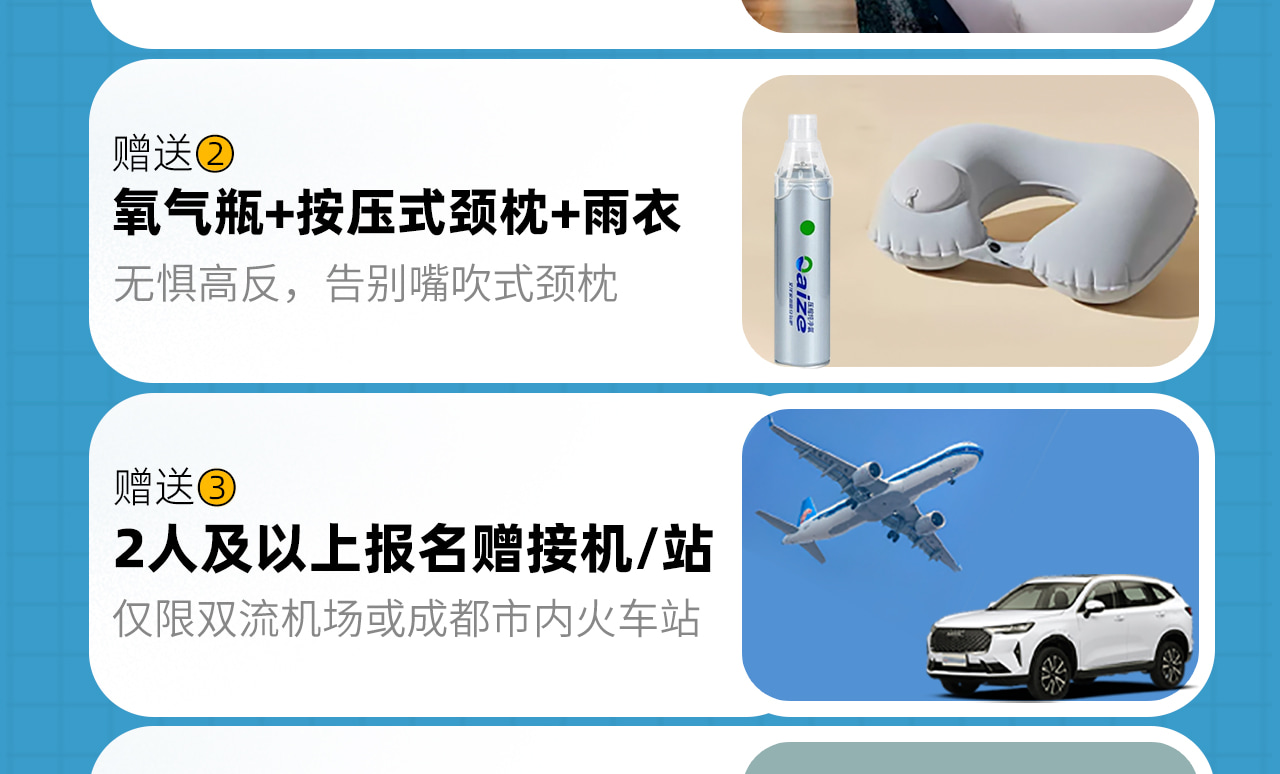 - [贈大禮包] 贈集合日1晚4鑽飯店+80W保險+頸枕+雨衣+瓶裝氧氣+接機/站。