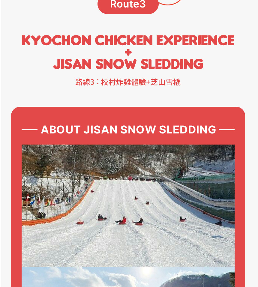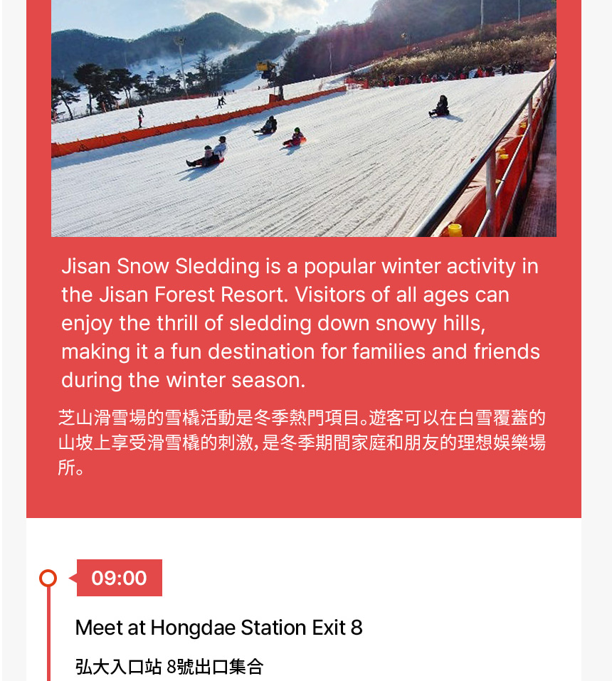 - 芝山滑雪度假村雪橇: 在芝山滑雪度假村的雪坡上享受刺激的雪橇冒險,適合所有年齡層。