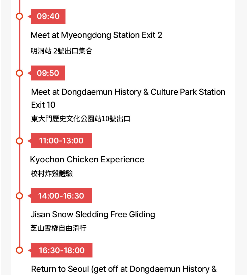 - 行程可能因交通狀況而有所調整。回程時間可能因交通壅塞而延誤。