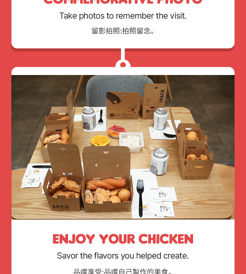 - 「自製炸雞」活動適用於 6 歲及以上兒童。未滿 6 歲兒童須由監護人陪同參加,且不額外提供炸雞份量。