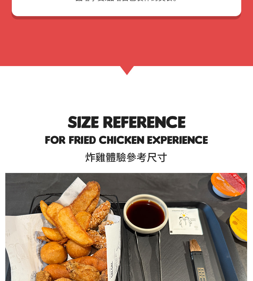 - 考量燙傷風險,參加者不可直接炸雞,但可觀看專業炸雞過程。