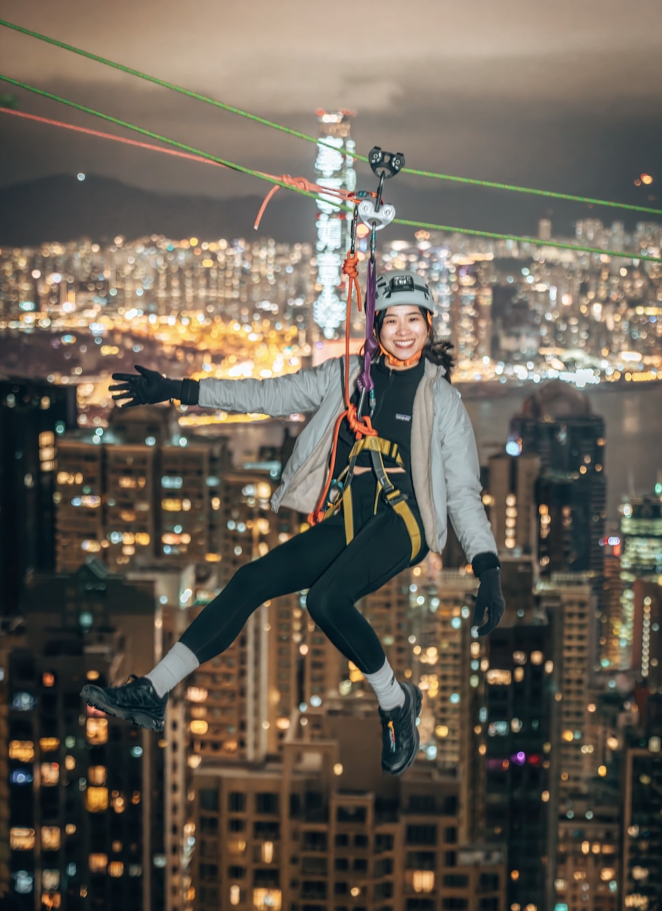 - 活動內容: 高空滑索、鐵索棧道 Via Ferrata、飛索千秋、徒步以及從 香港島頂部到維多利亞港的觀光