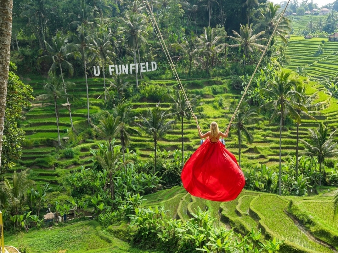 在烏布的私人梯田公園 U Fun Field 探索峇裡島的隱秘之美,這裡是冒險與美景的交匯處,讓您遠離人群喧囂。乘坐專為觀光設計的滑索,輕柔地滑過鬱鬱蔥蔥的綠色田野,並在四種不同的鞦韆——捕夢網鞦韆、極限鞦韆、花朵鞦韆和月亮鞦韆上感受刺激。在峇裡島之翼、鳥巢、蜂巢等獨家拍照點,從不同角度捕捉精彩瞬間。隨後,騎上空中自行車,在令人驚歎的風景中穿梭。最後,在導遊的帶領下漫步於寧靜的梯田,瞭解峇裡島的傳統農耕文化,並在大自然的寧靜中放鬆身心。這裡是情侶、家庭和朋友體驗刺激、文化與寧靜的完美結合。