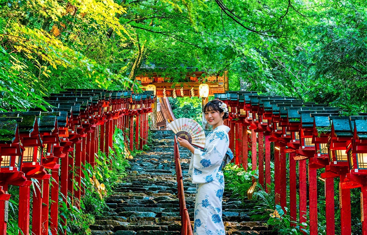 - 隨後前往 貴船神社,古老神社坐落於京都北部山區,分本宮、結社、奧宮三個區域。石階兩旁的紅色長夜燈是拍照勝地📸,結社供奉緣分之神磐長姬命,是戀愛祈福熱門景點。貴船神社附近山林茂密,八月清涼避暑,秋季紅葉豔麗,是京都知名賞楓名所。