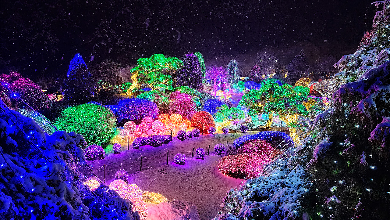 夜晚的晨靜樹木園化身為魔幻仙境,自然之美與璀璨夜光交織,營造出寧靜浪漫的氛圍。