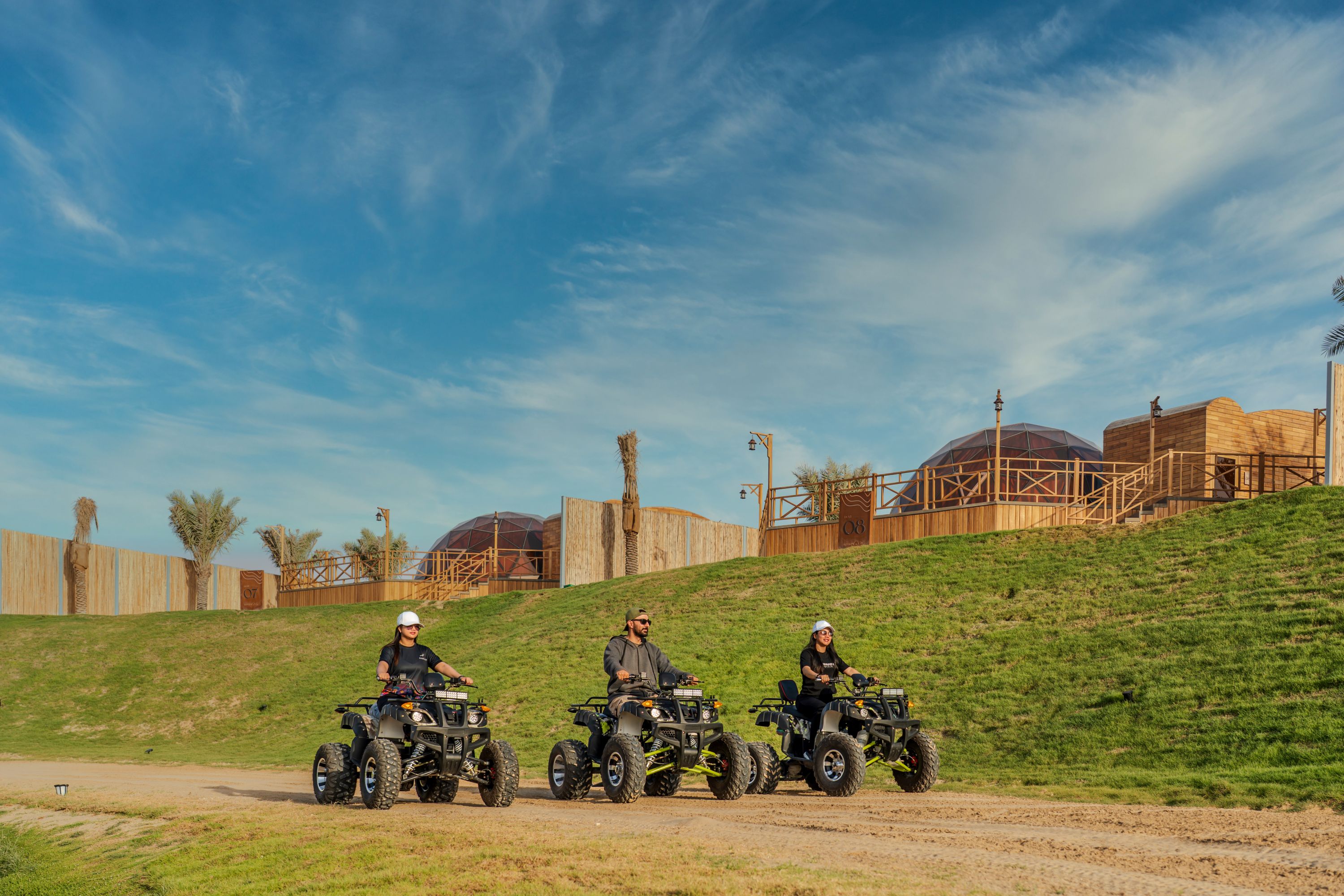 在Al Marmoom Oasis享受豪華私人住宿,入住配備現代化設施和迷人內飾的穹頂客房。您可以在私人泳池旁放鬆身心、享受日光浴或在星空下游泳。乘坐G級梅賽德斯經典獵遊之旅,探索沙漠之美,觀賞野生動物,瞭解阿聯酋文化。參觀著名的Al Salah Horse Stud,並騎上環保型60V電動四輪摩托車進行探索。