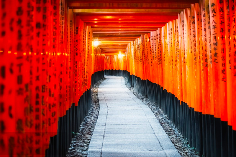 位於日本京都的一座著名神社,這座神社不僅在日本國內,在國際上也享有盛名,尤其以其成千上萬的硃紅色鳥居(Torii)而聞名,這些鳥居沿著山道一路蜿蜒向上,形成了一條壯觀的“千本鳥居”