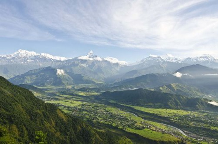 無需費力攀登。只需步行15分鐘上山,您就會發現自己身處觀賞日出的絕佳地點,俯瞰令人驚歎的全景。在晴朗的日子裡,您將欣賞到道拉吉里峰(Dhaulagiri)(8,167米)、魚尾峰(Machhapuchhre)(6,997米)、安納布爾納I峰(Annapurna I)(8,091米)、安納布爾納II峰(Annapurna II)(7,937米)、安納布爾納III峰(Annapurna iii)(7,219米)和馬納斯魯峰(Manaslu)(8,163米)的壯麗景色。此外,您還可以欣賞到風景如畫的博卡拉山谷的壯麗景色。