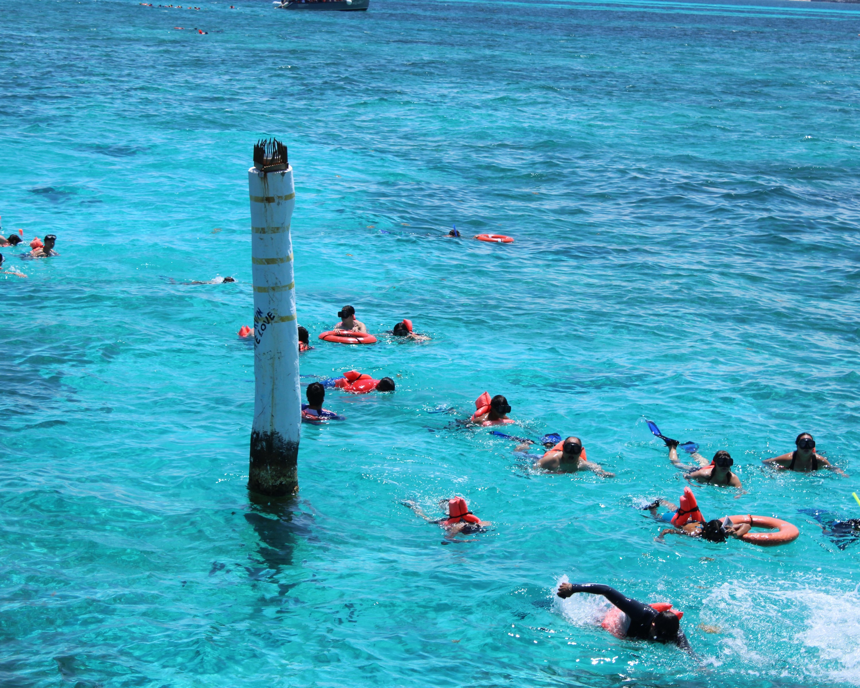 探索迷人的女人島,在充滿活力的珊瑚礁中浮潛,並參觀水下博物館的第三部分,欣賞令人難以置信的水下雕塑,我們還為您準備了浮潛裝備。在水上探險之後,盡情享用美味的自助餐,其中包括該島著名的Tikin Xic魚,這是一種必嘗的當地特色菜。