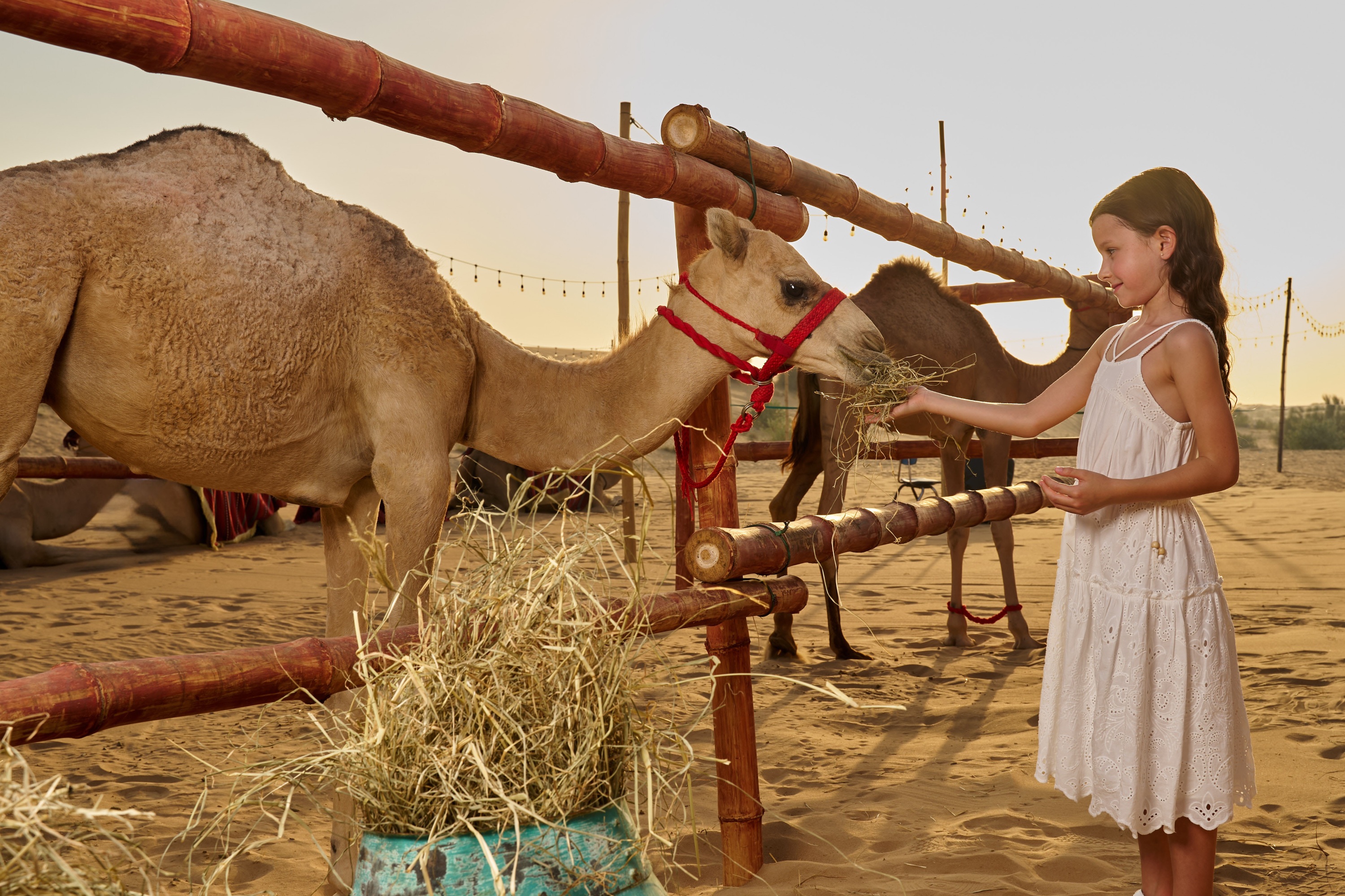 在 Noble Camp,您可以沉浸在阿拉伯文化中,這裡有傳統的集市、Luqaimat 糖果、駱駝騎行、小駱駝餵食、指甲花紋身和完全許可的酒吧。