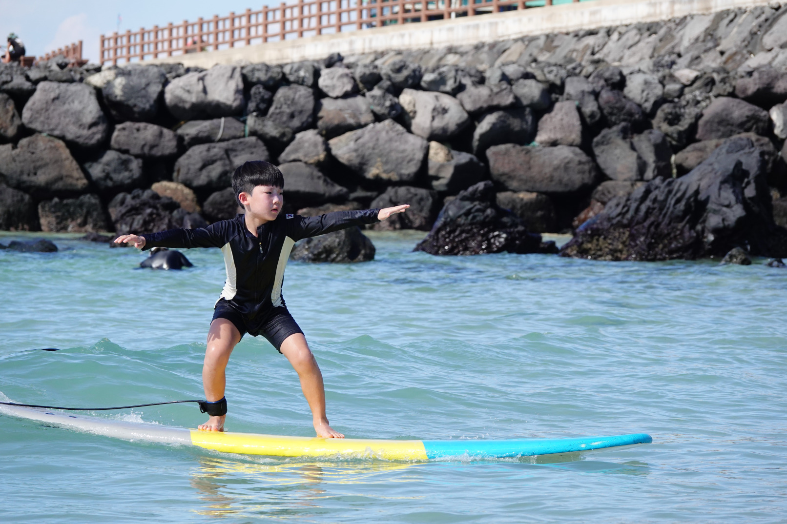 - 涯月邑海灘是初學者學習衝浪的好地方。何不嘗試一下衝浪呢?