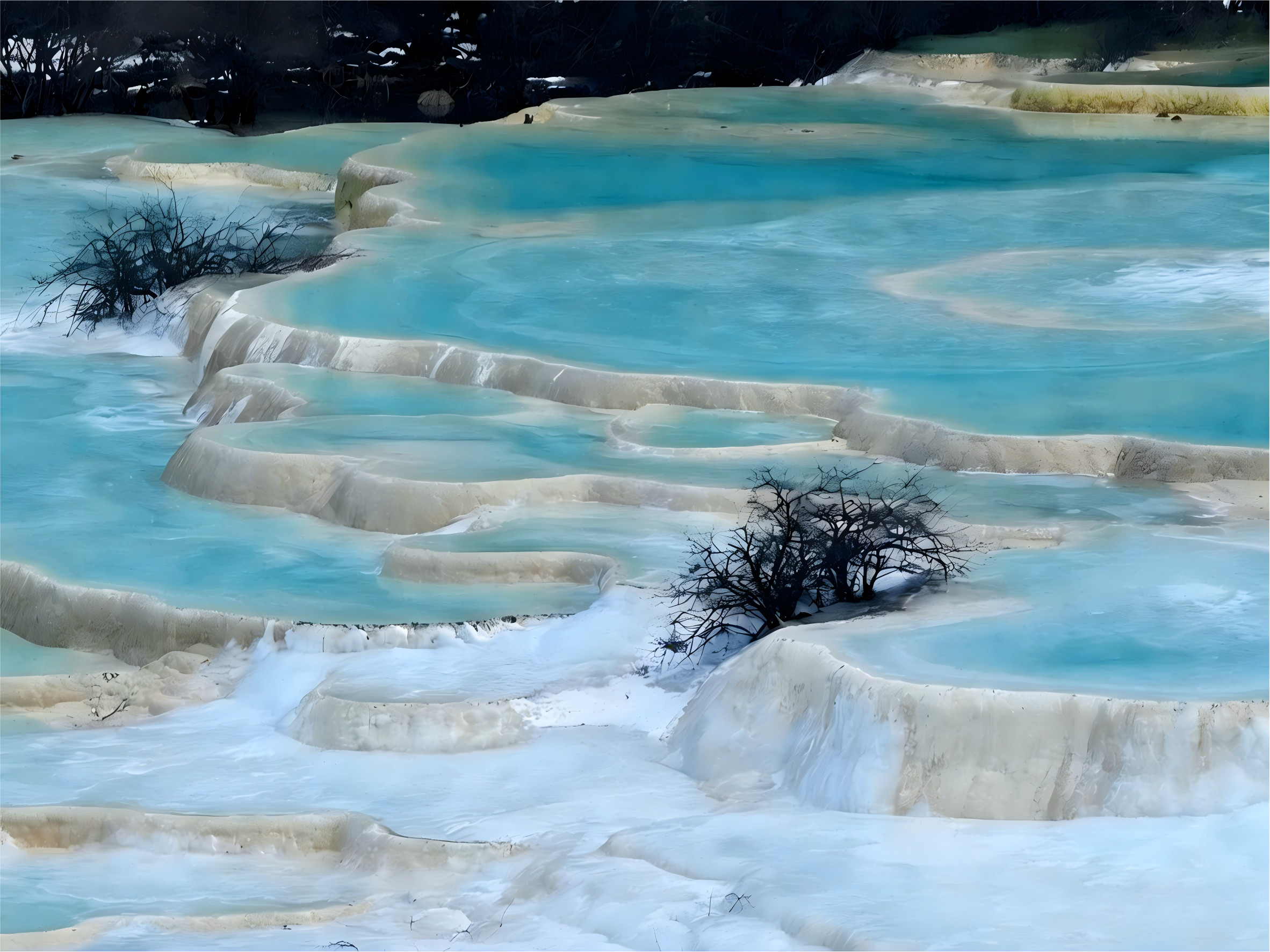 - 🌈 五彩池:核心景觀,是世界上規模最大、海拔最高的露天鈣華彩池群 。