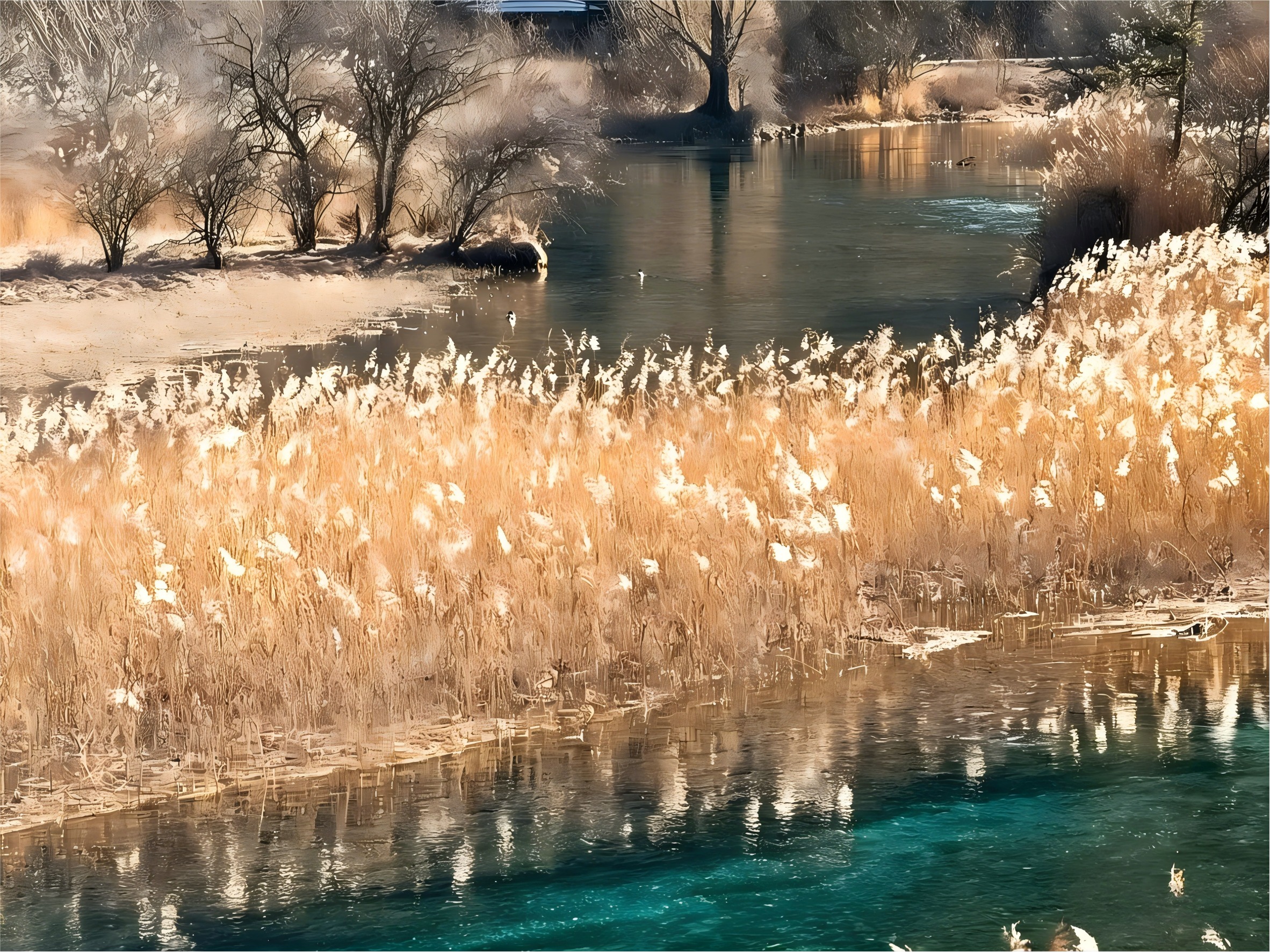 - 🌾蘆葦海 :最被低估的海子!金色蘆葦+碧藍湖水+暖陽 ,仙境般美麗