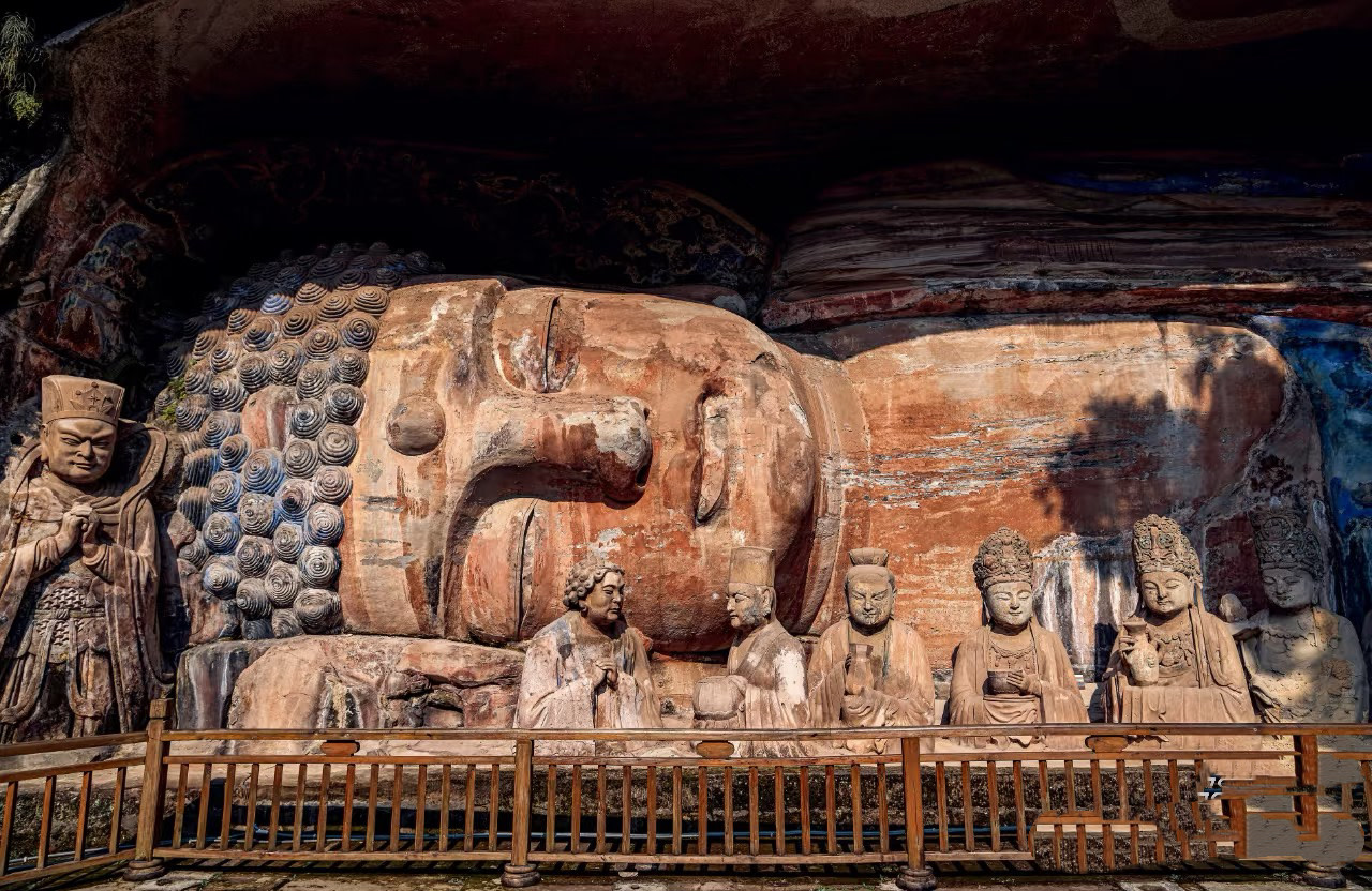 - 寶頂山摩崖造像,是大足石刻中規模最大,造像最精美的一處。寶頂山的每一尊石刻都有它背後的寓意和故事,其中最知名的就是臥佛、千手觀音、六道輪迴、牧牛道場和圓覺洞,寶頂山的石刻全部是呈15度角傾斜,當我們抬頭仰望造像的時候都有一種頂禮膜拜的感覺,體現了古代匠人的高超技藝和人生智慧