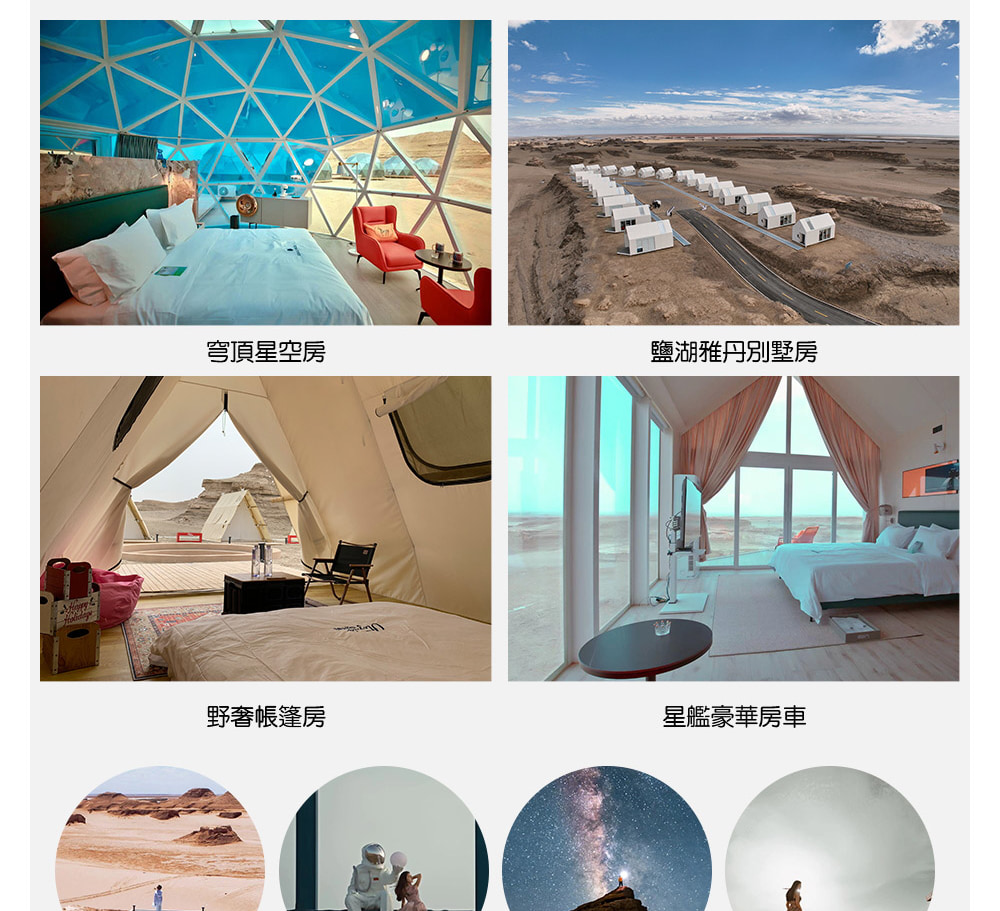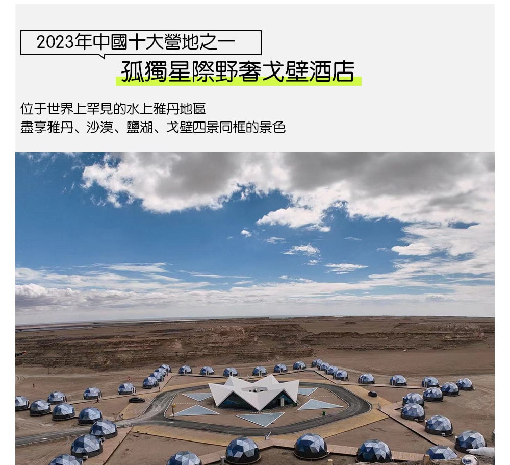 - 孤獨星際戈壁野奢飯店&戈壁荒野裡的安心之處 星空房,本線路為孤獨星際戈壁飯店2000+住宿,非孤獨星際(沙漠)營地飯店!敬請知悉!