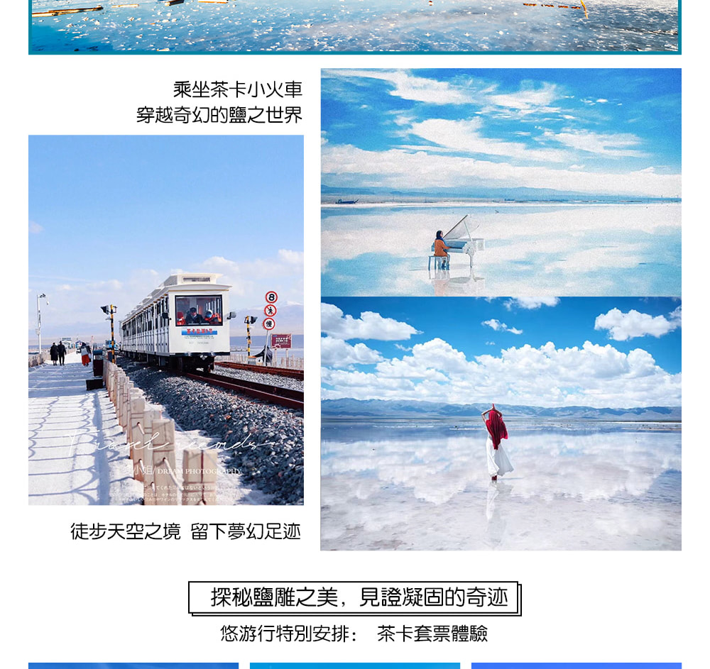 - D6大柴旦或格爾木—茶卡鹽湖乘坐小火車(車程約400KM/5H)