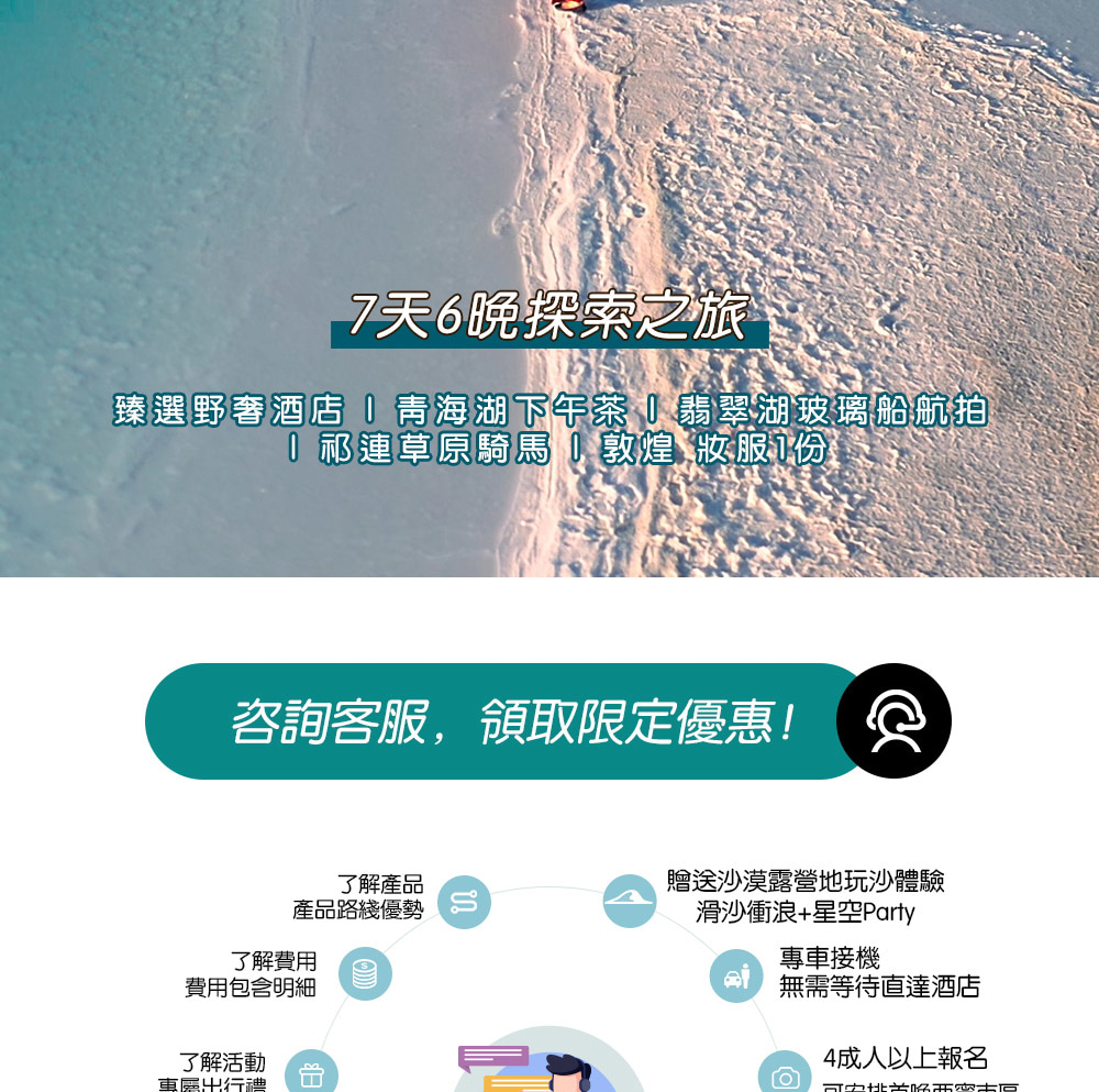 【私享定製團】青甘大環線高奢7日遊(2晚敦煌山莊+孤獨星際野奢飯店+反走降低高反+保障空座率+翡翠湖航拍+飛天妝造+青海湖+莫高窟)