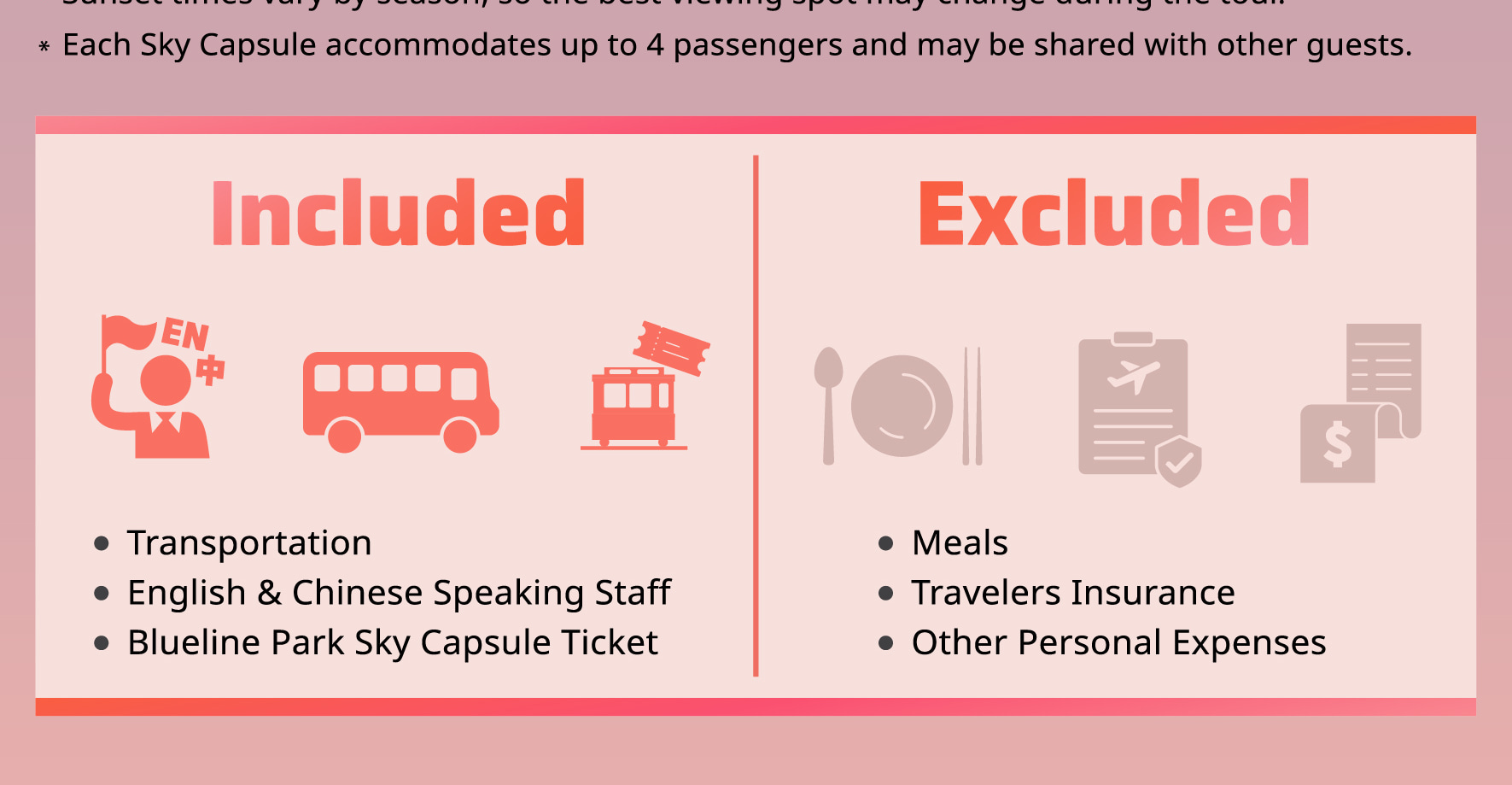 乘坐海雲臺天空艙,體驗令人歎為觀止的海岸風光和難忘的日落美景。