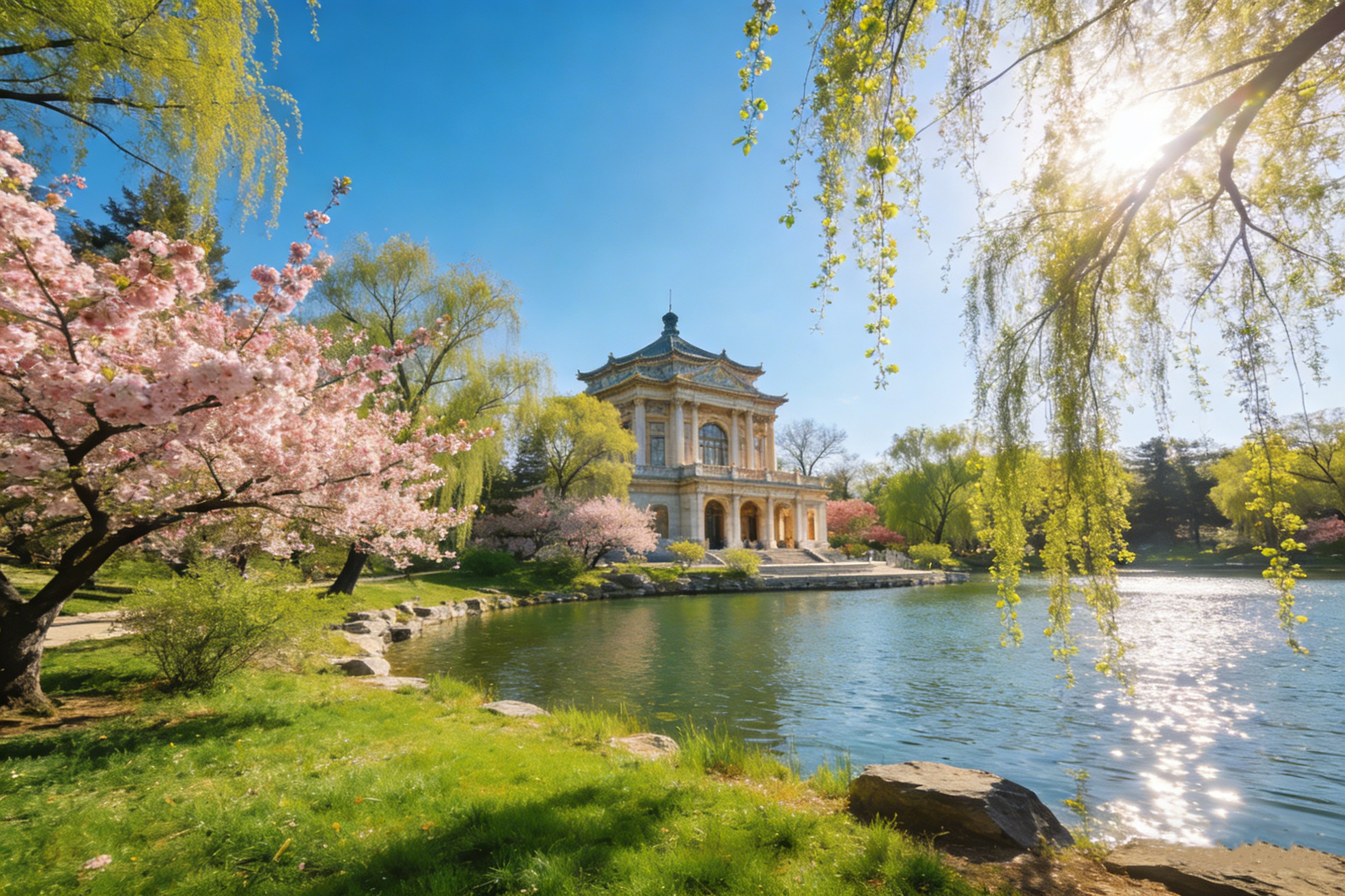 頤和園包含智慧海、佛香閣、昆明湖、十七孔橋等多個景點。智慧海是一座磚石結構的建築,外部裝飾著精美的琉璃佛像,在陽光的照耀下閃閃發光。佛香閣是頤和園的標誌性建築,它矗立在萬壽山上,高大雄偉,氣勢非凡。站在佛香閣上,可以俯瞰整個頤和園的美景,湖光山色盡收眼底。昆明湖是頤和園的重要組成部分,湖水清澈碧綠,波光粼粼。湖面上游船往來穿梭,宛如一幅美麗的畫卷。十七孔橋則橫跨在昆明湖上,宛如一條巨龍橫臥在水面上。橋身有十七個橋洞,每個橋洞都有精美的雕刻,造型各異,栩栩如生。在這裡,你可以欣賞到皇家園林藝術的精髓,感受到