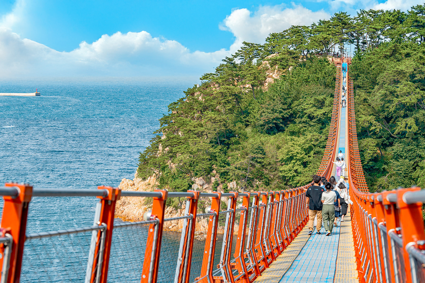 在蔚山的大王巖公園,穿過橫跨大海的驚險吊橋,欣賞岩石和大海令人歎為觀止的景色。(自2025年9月15日起)