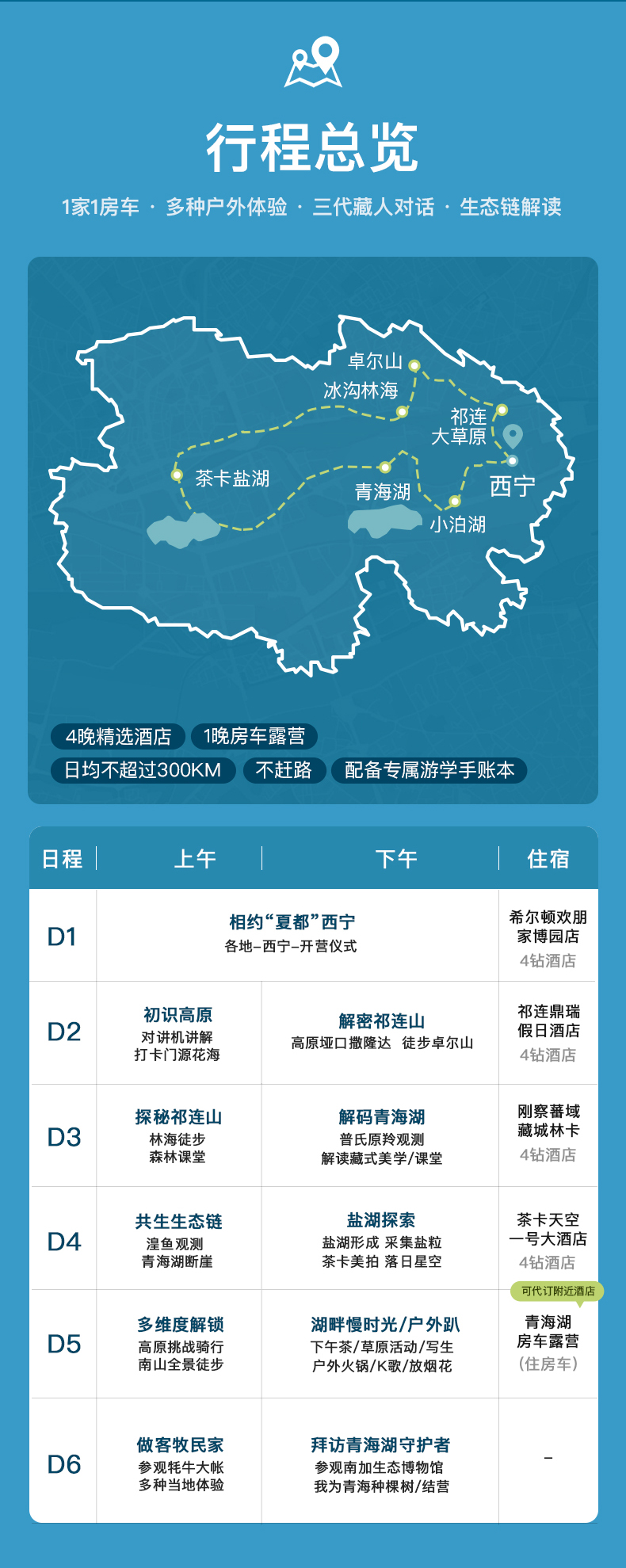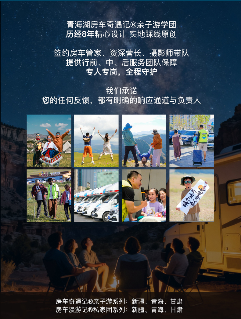 - 3.因政策原因,原行程中“青海湖奇遇記”所包含的祁連鼎瑞假日飯店住宿,將調整為同飯店停車場內的房車露營體驗。