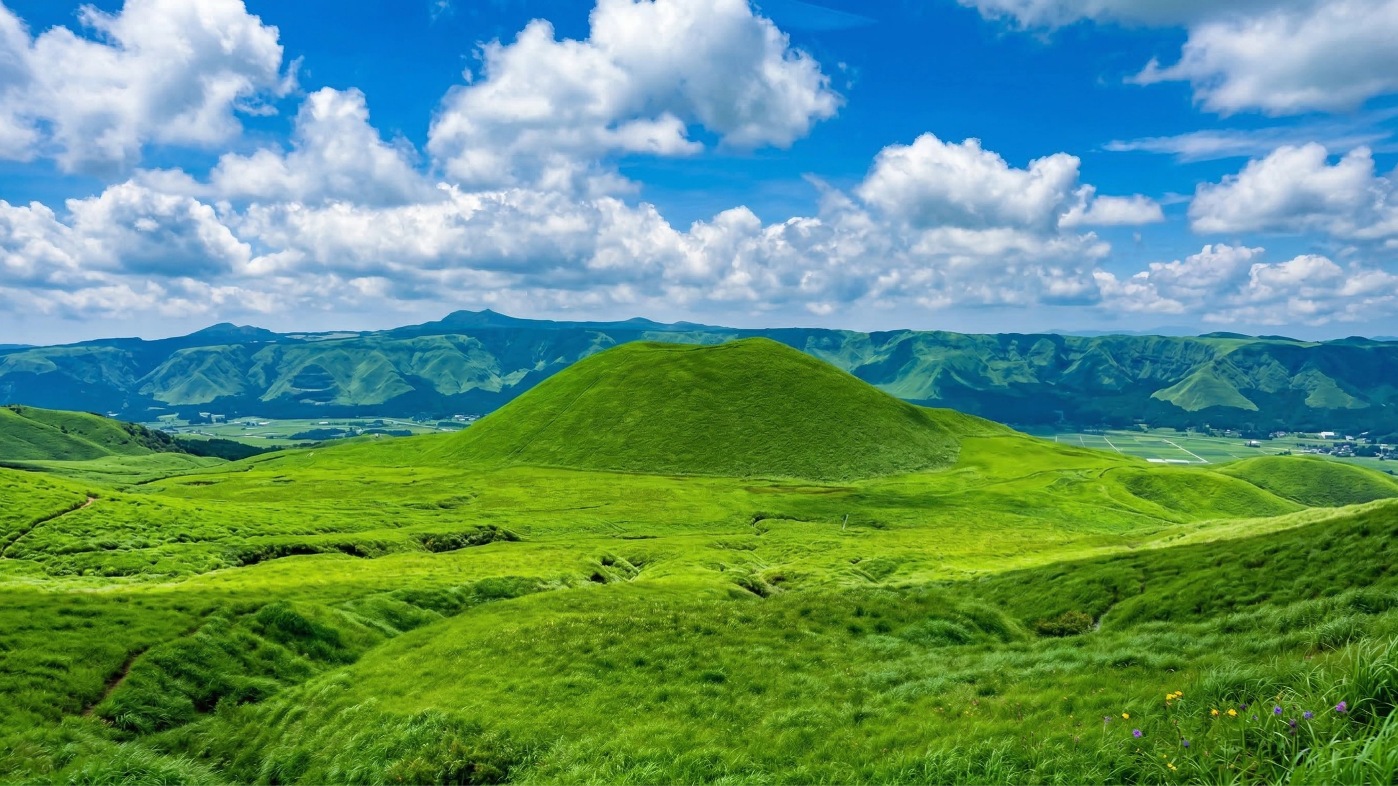 第三站:草千里——火山灰滋養的草原在風中捲起綠浪,火山口草原綿延如畫卷,隨手拍出《小森林》同款治癒大片。