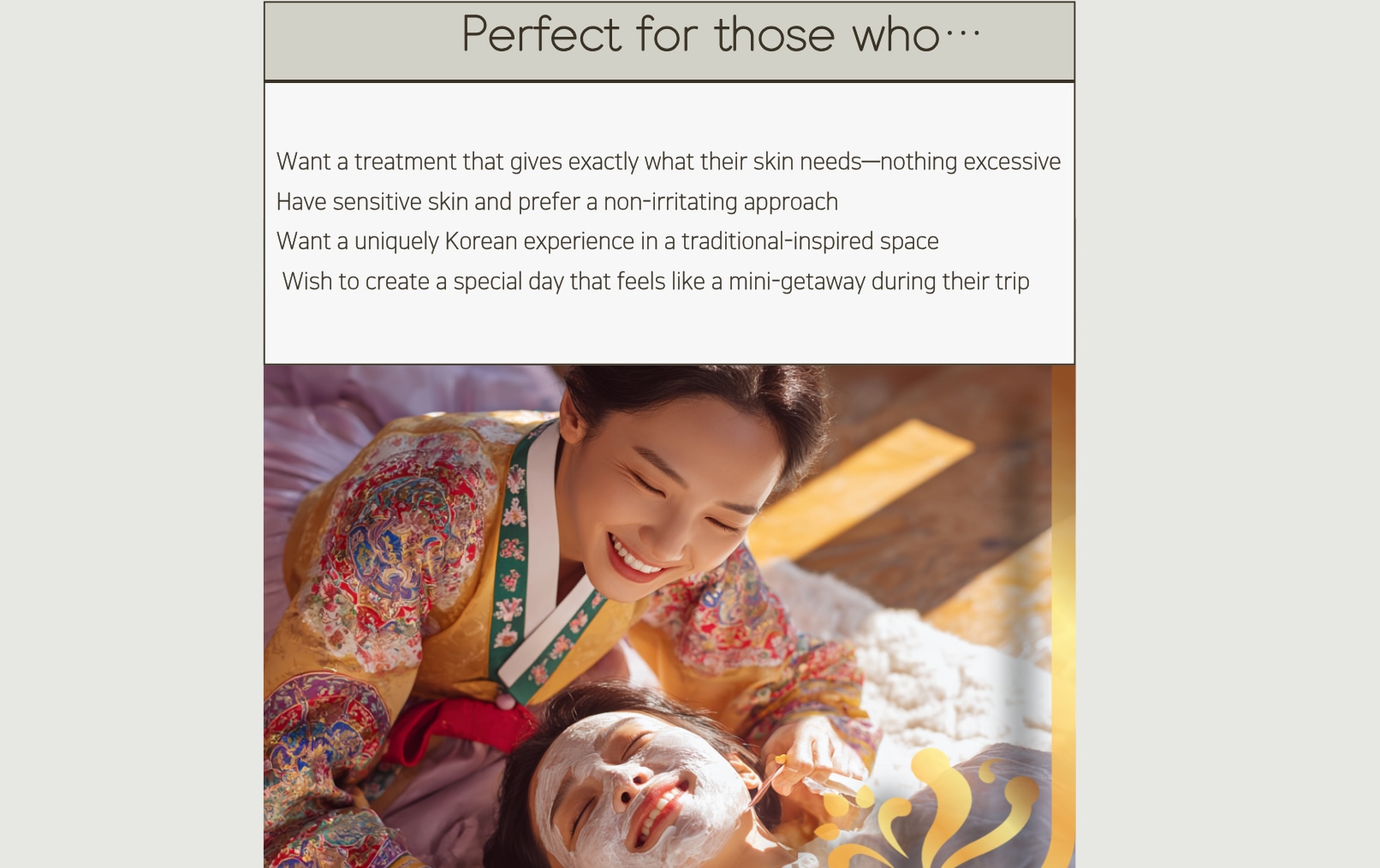 在身著傳統韓服的理療師熱情歡迎下,開啟您的體驗,並享受精心指導的專業護理。