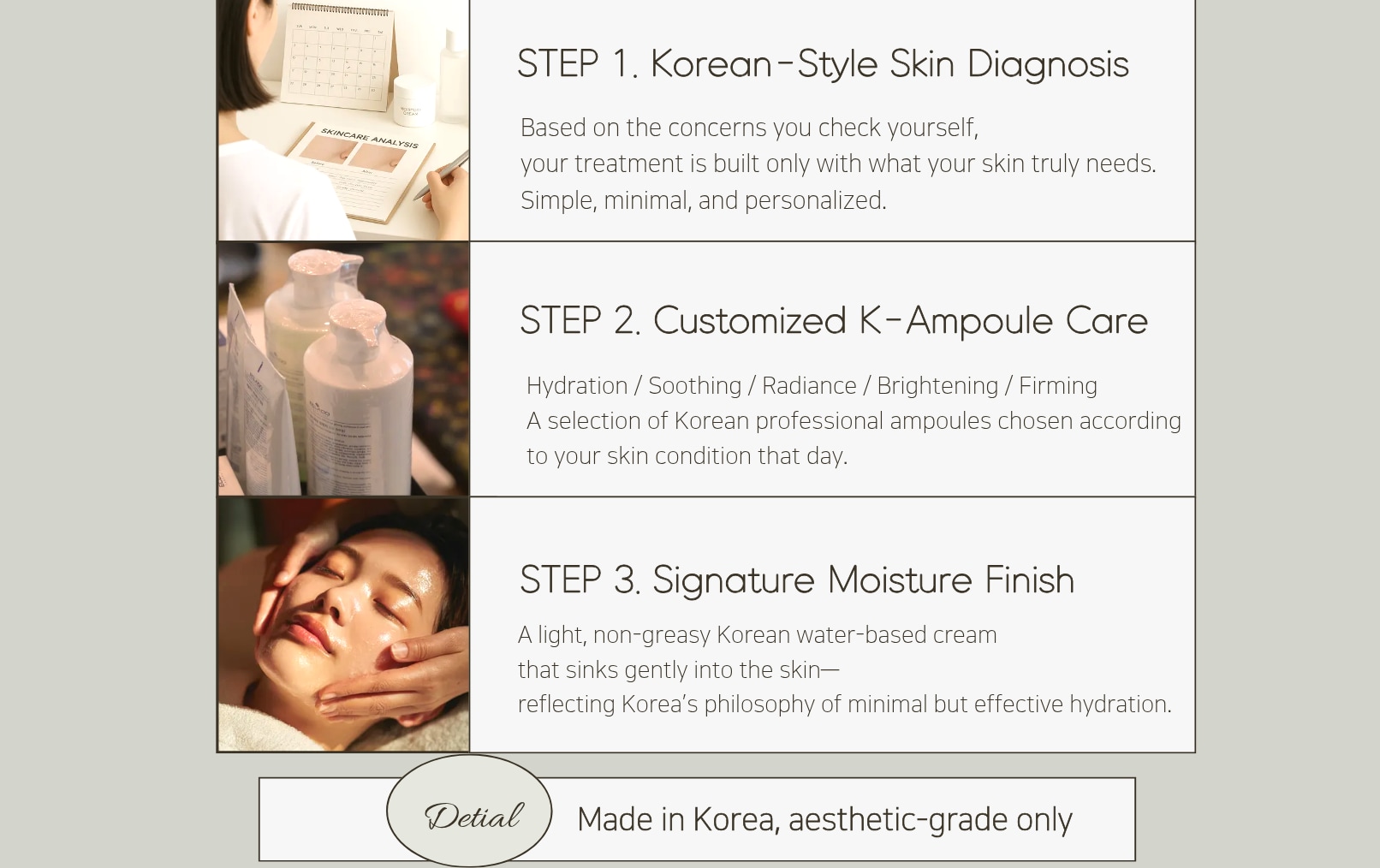 如果您不會說韓語,也無需擔心。 我們護理的每一步都配有多語言指南卡,讓您在整個體驗過程中倍感安心。