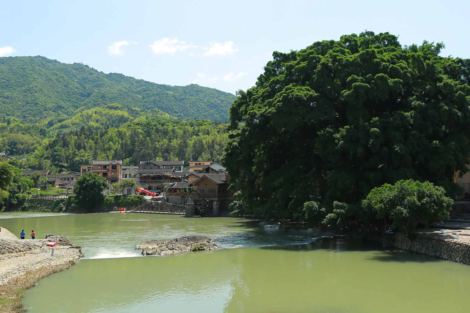 雲水謠古道:千年古驛道,沿溪而建,全長約1公里,鋪滿鵝卵石。古道旁有13棵百年以上古榕樹,最大的一棵“榕樹王”樹幹需十餘人合抱。溪水清澈,水車緩緩轉動,還原電影《雲水謠》的經典場景。